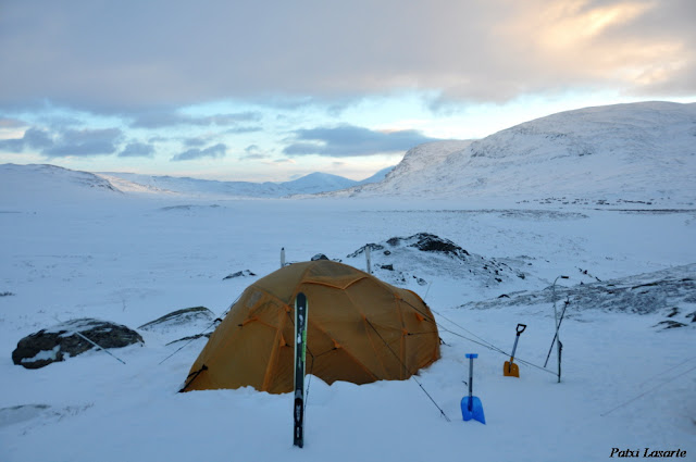 Beno, berez hara abiatu ginen fondo edo iraupen eskiez baliatzeko ibilbide bat egitera. Badago han oso ezaguna den GR edo trekking bidea; Kungsleden, “Erregeren bidea” deitua. Uda garaian oinez jarraitzen da, baina neguan oso egokia da iraupeneko eskiez egiteko.