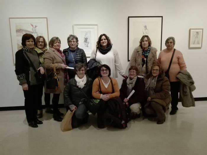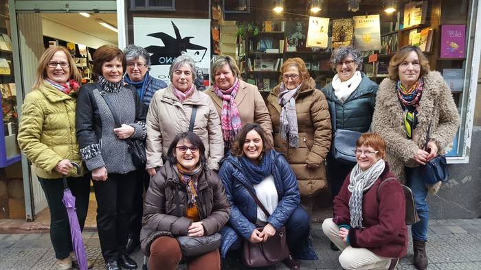 Louise Michel liburudendan egon ziren, testuz hornitzeko emakumeen etxea, eta gero Alhondegira jo zuten Margaret Harrisonen erakusketa ikusteko.