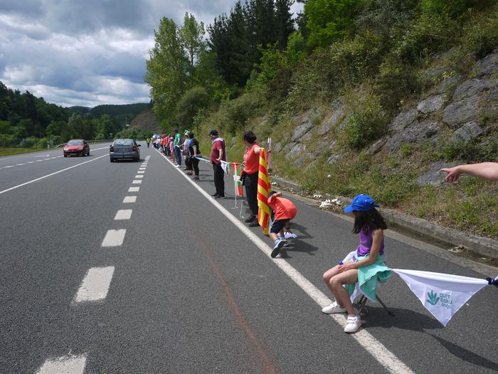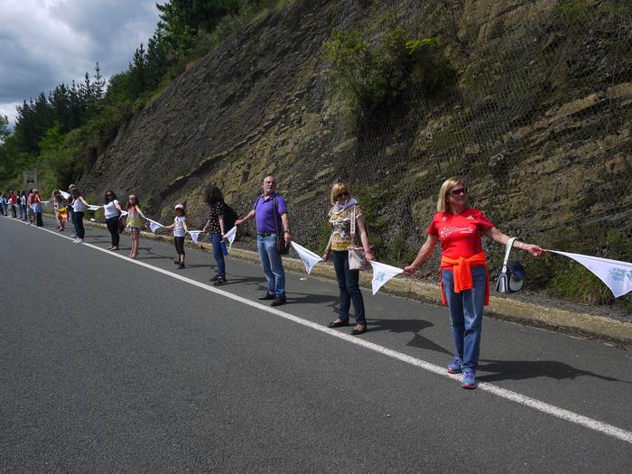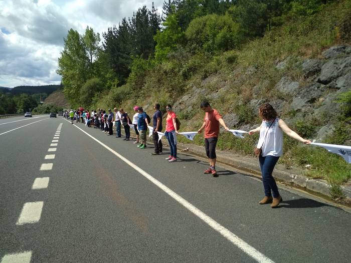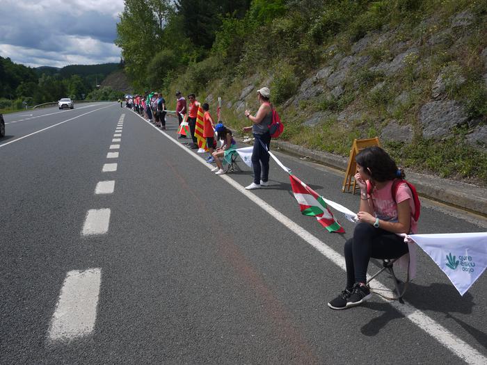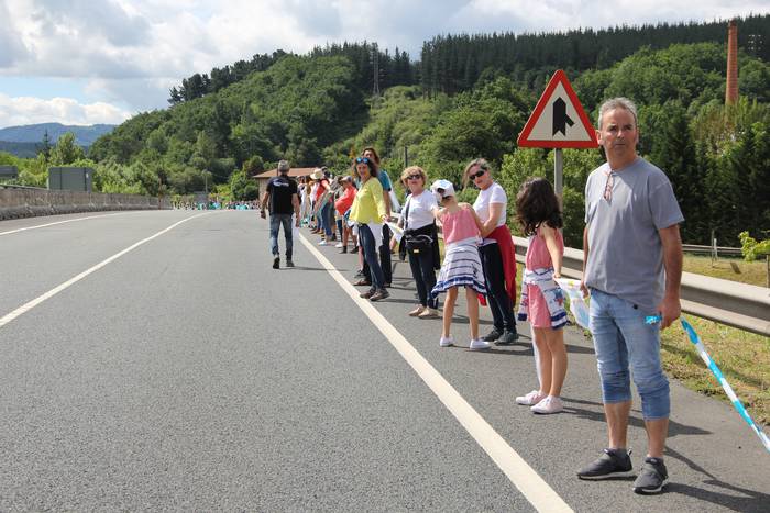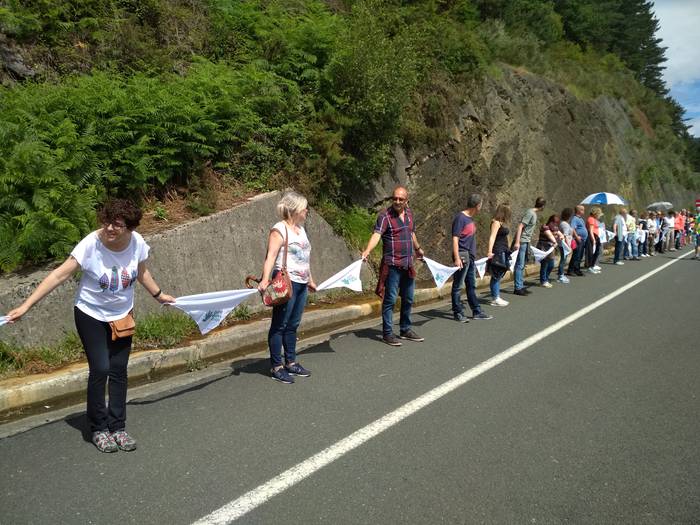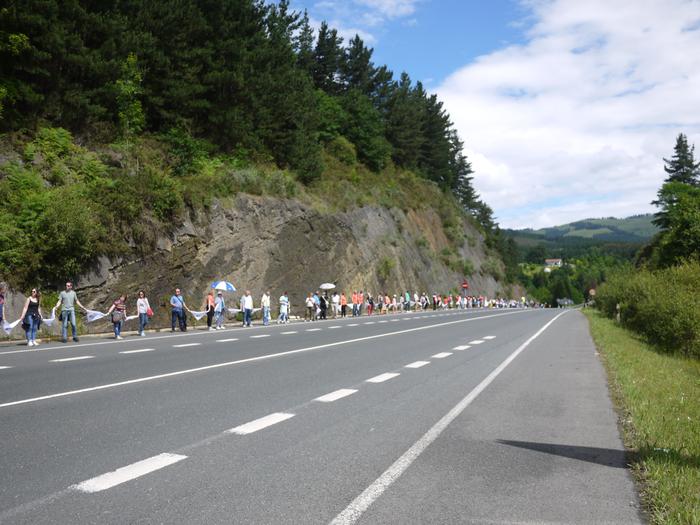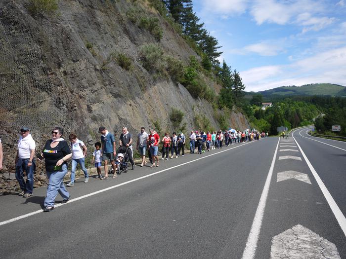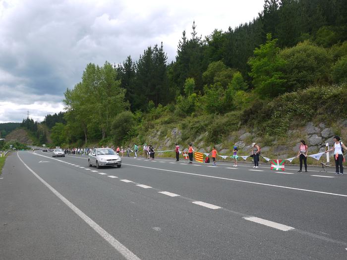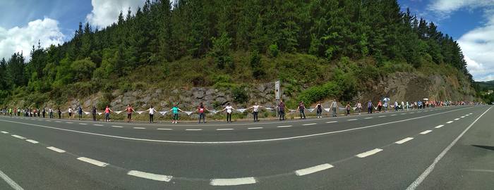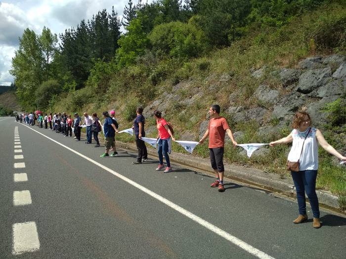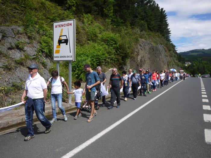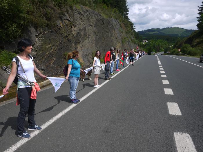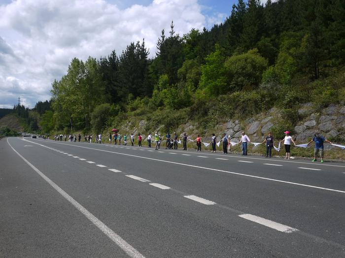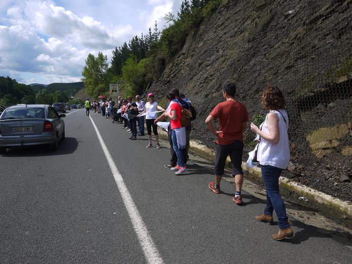 Artziniega, Okondo eta Aiarako herritarrek hitzordua zuten gaur Luiaondon batzeko Gure Esku Dagoko giza katera. Hamaiketakoa eta tragoa goiz hartu ostean, errepidera jo dute eskuak lotzera.
