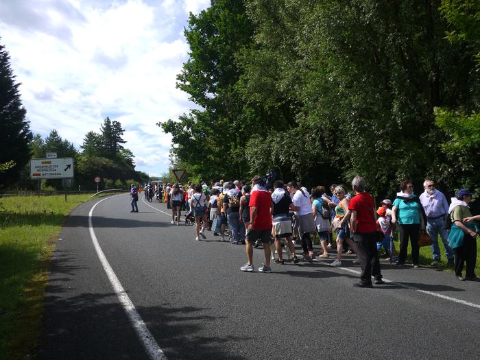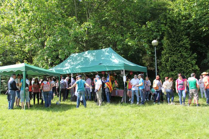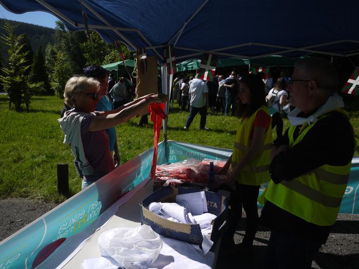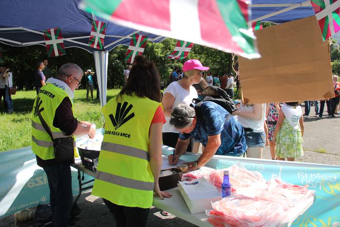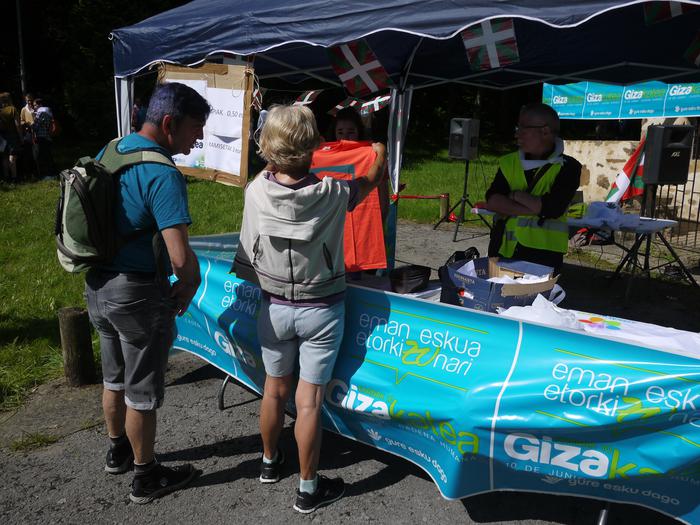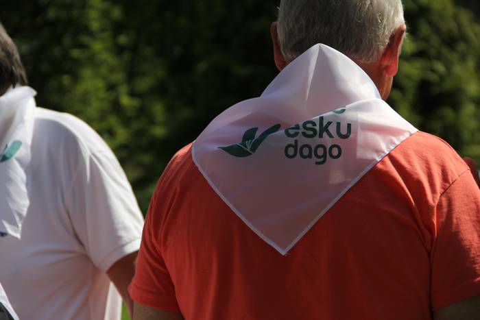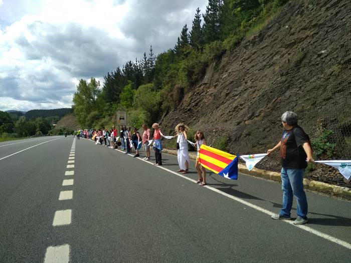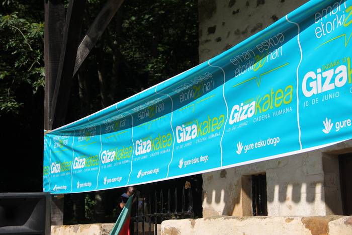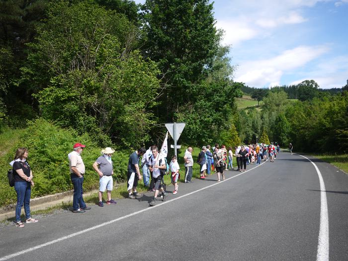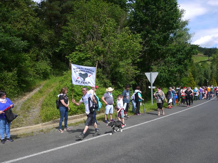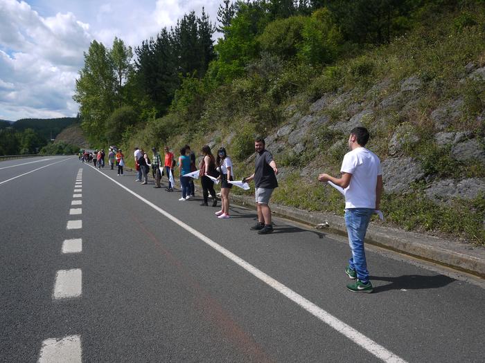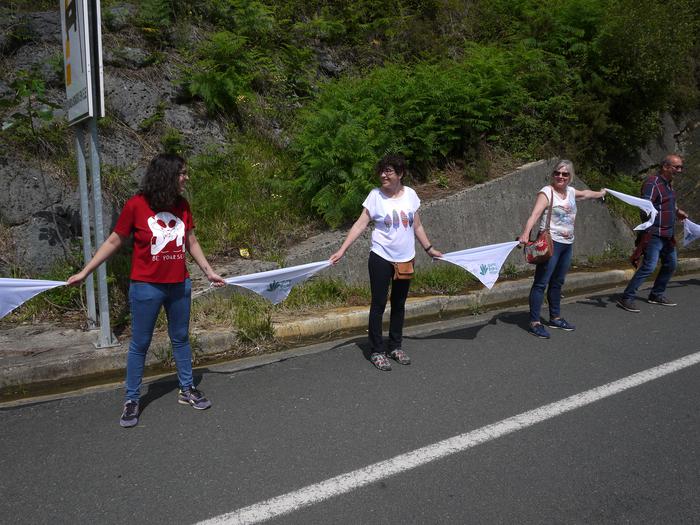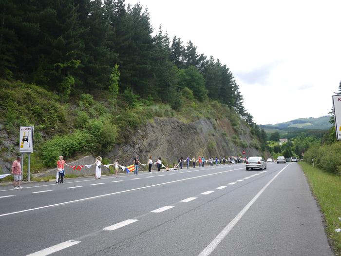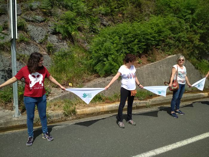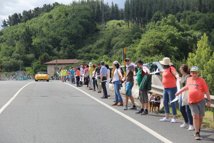 Artziniega, Okondo eta Aiarako herritarrek hitzordua zuten gaur Luiaondon batzeko Gure Esku Dagoko giza katera. Hamaiketakoa eta tragoa goiz hartu ostean, errepidera jo dute eskuak lotzera.