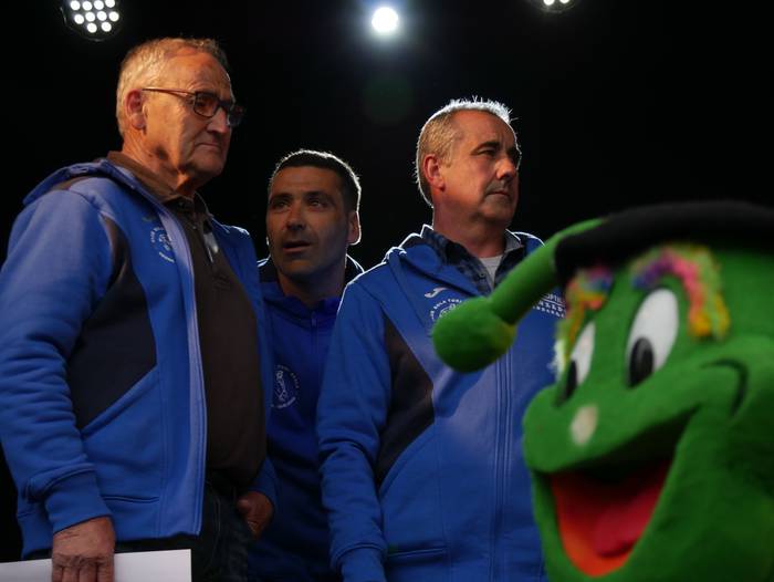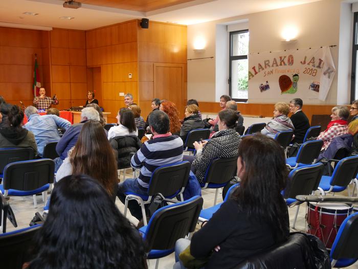 19:00etan ekin zioten Aiarako jaien hasiera ekitaldiari. Sanprudentzio festetako kartel lehiaketako irabazleak saritu zituzten lehendabizi, eta ondoren irakurri zuten pregoia. Bea Isasi lehendakariak hartu zuen hitza, bolo taldeko zenbait kiderekin batera. Festa giroa izanik, emakumeen parte hartzearen garrantzia azpimarratu zuen Isasik ekitaldian, bai bolo kirolean eta baita jaietan ere.