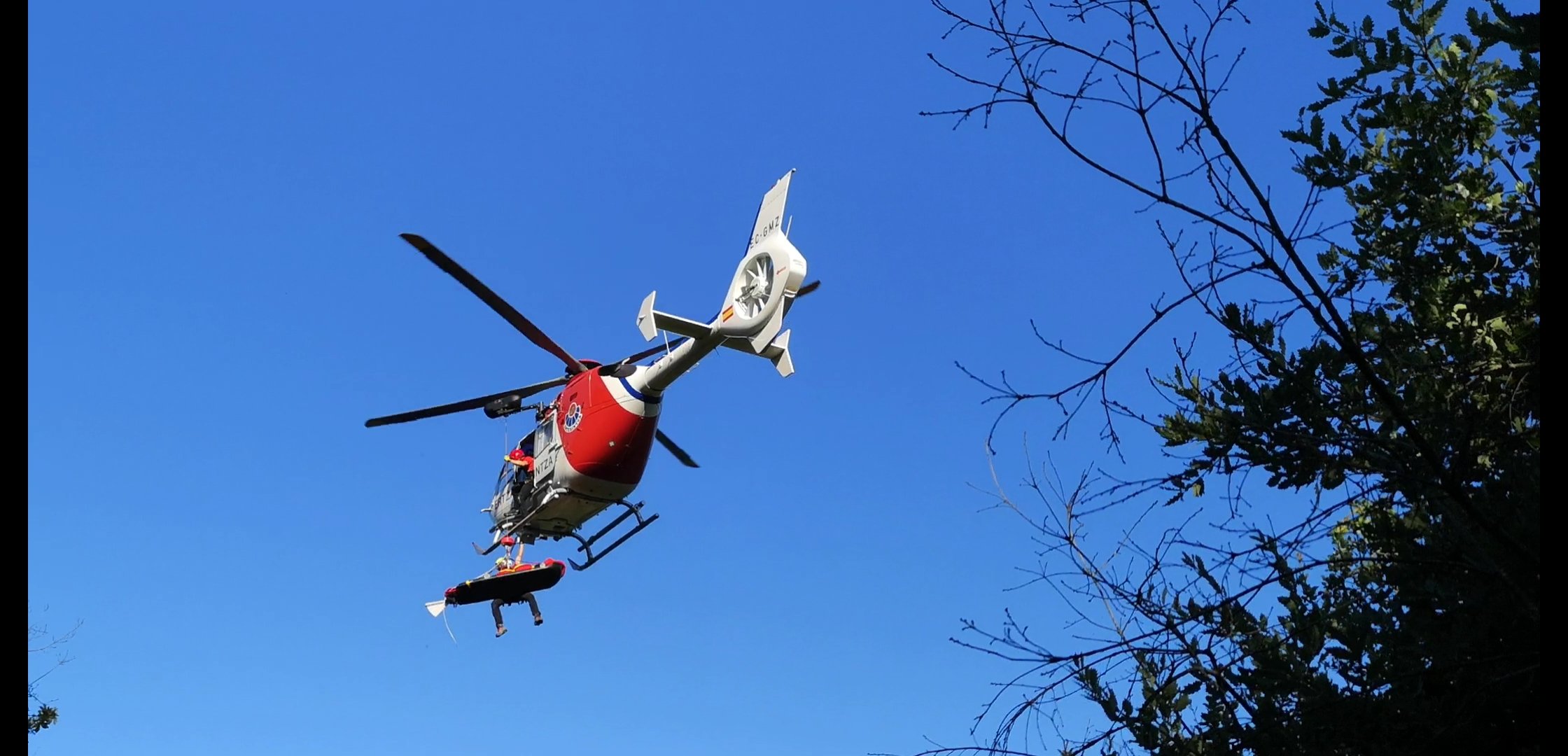 Emakumezkoak mina hartu du bizkarrean eta Ertzaintzaren helikopteroak atera du, Osakidetzako profesionalen esku uzteko Aiaran. Osasun langileek botika eman diote mina leuntzeko eta gero Gurutzetako ospitalera eraman dute, Osakidetzako helikopteroan.