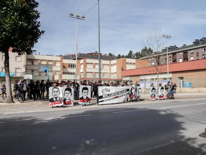 Elkarretaratzea egin dute gaur eguerdian Laudion. Altsasuko gazteen aurkako espetxe zigorren berrestea salatzea izan da ekimenaren xedea. Gauzak hala, Guardia Zibilak herrian duen kuartelaren pareraino joan dira protesta gauzatzera.