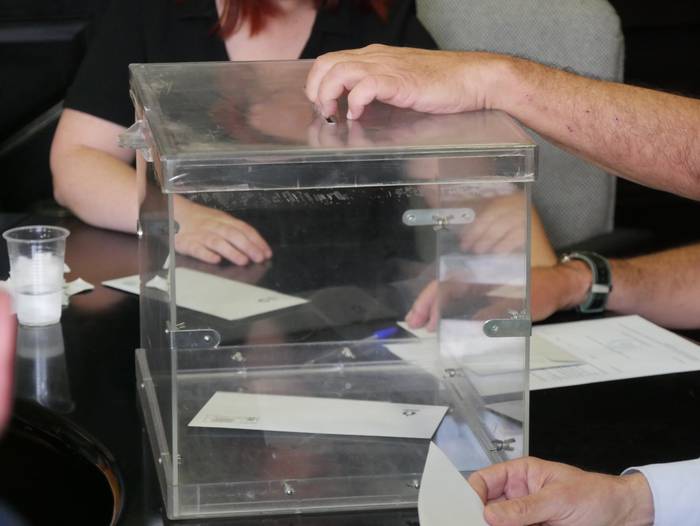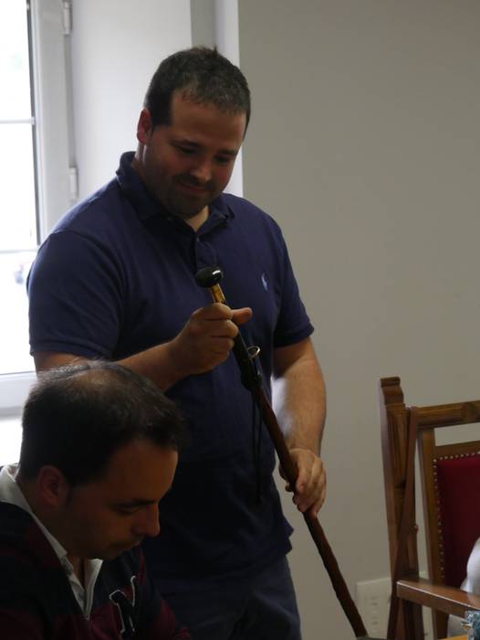 Laudion ordubete beranduago hasi da bilkura. Aurreikusi bezala, Ander Añibarro jeltzalea hautatu dute alkate izateko, EAJren eta PSE-EEren aldeko botoekin. EH Bildu abstenitu egin da bozketan. Natxo Urkixo alkate ohiak zorterik onena opatu dio Añibarrori, eta aginte makila eman dio jarraian. Añibarro “hunkituta” sentitu da ekitaldian, eta Laudiorentzat “etapa berri bat” ireki dela jakinarazi du, “herria berriz mapan jartzeko garaia”.