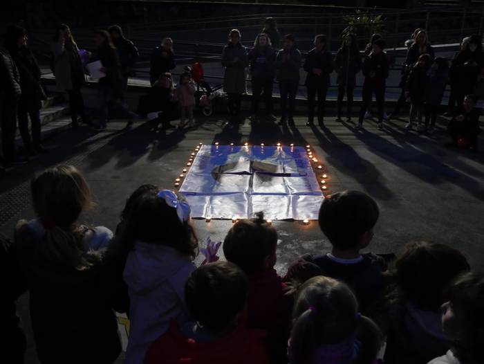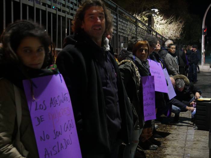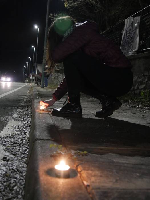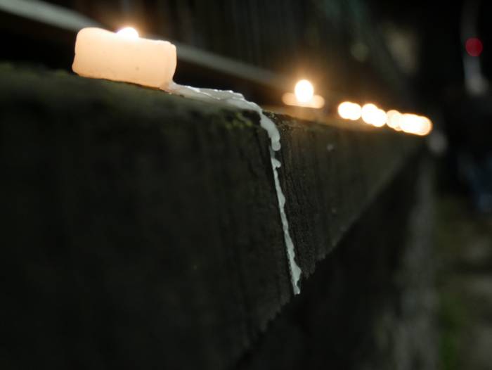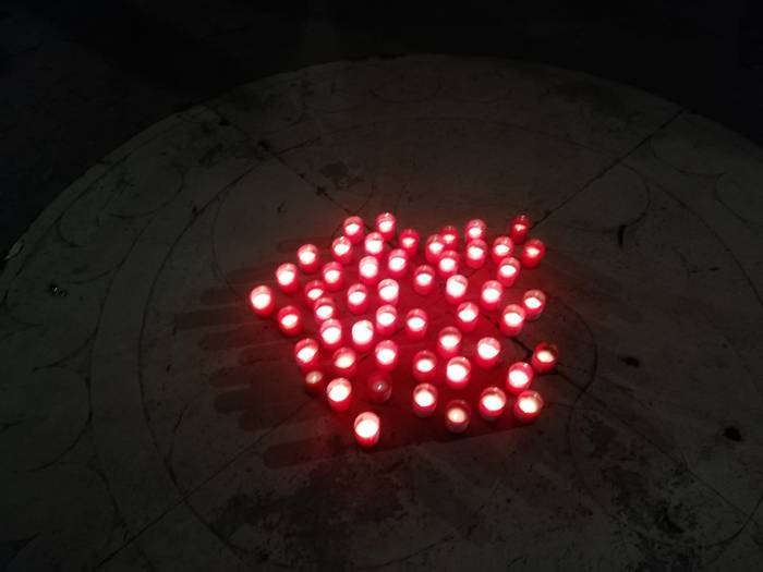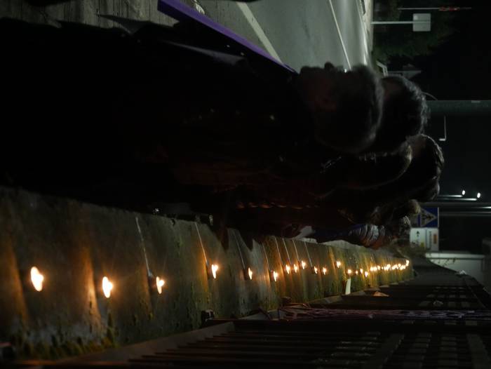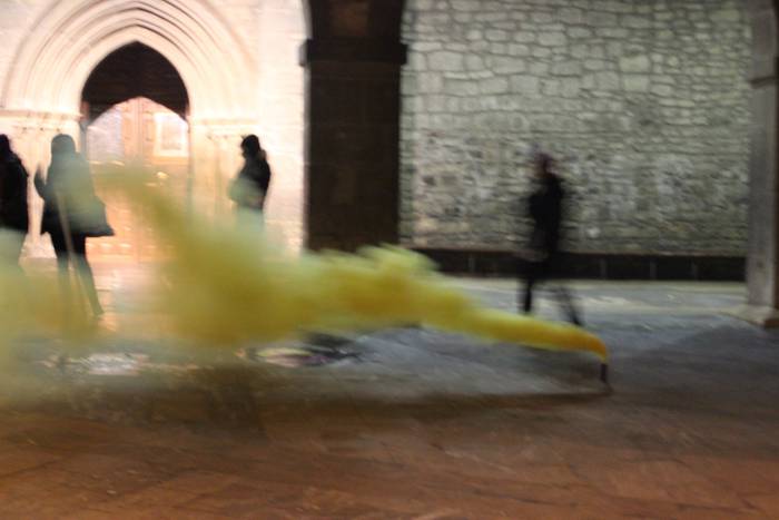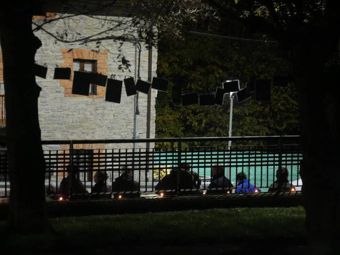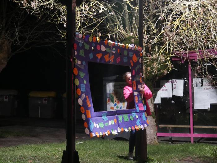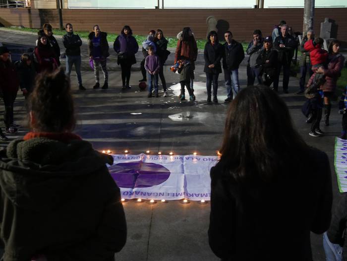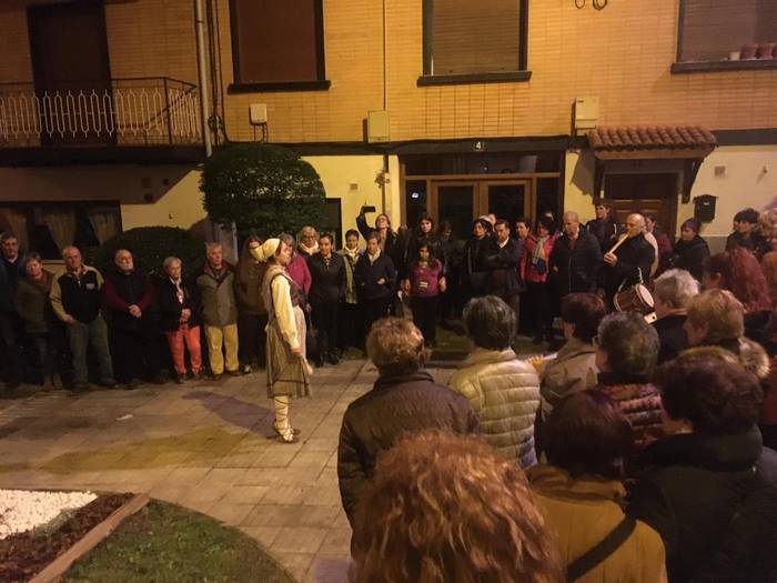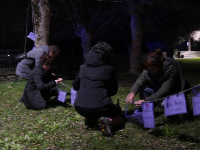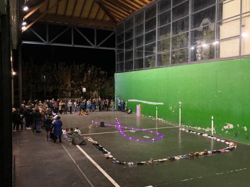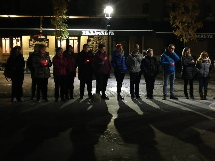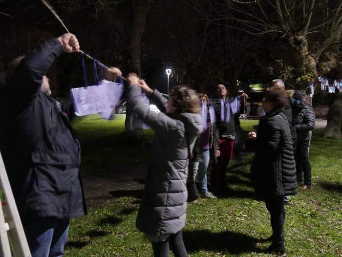 Artziniegan dozenaka lagun bertaratu dira frontoian egin den ekimenera. Oinetako parez bete dute zorua, indarkeria matxistak aurten eraildako emakumeen omenez. Aiaran eta Okondon, aldiz, kandelak baliatu dituzte aldarriak pizteko.