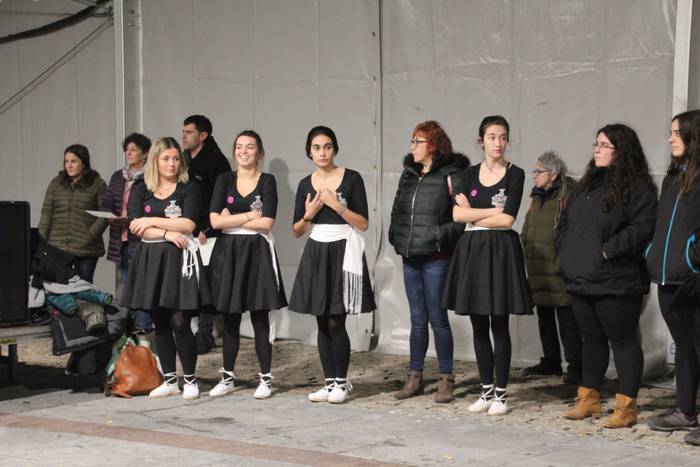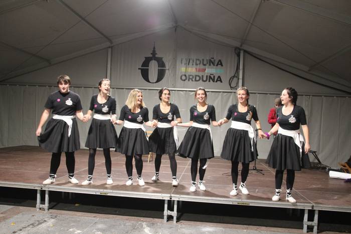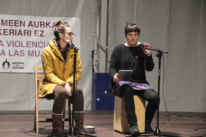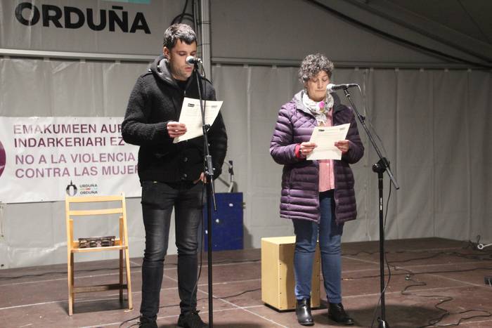 Urduñan, aldiz, Foru plazako karparen aterpean egin dute ekitaldia. Musika eta dantza uztartu dituzte indarkeria matxistaren aurkako mezua zabaltzeko.