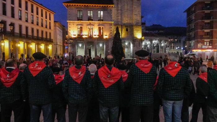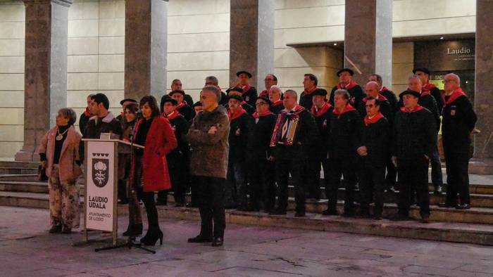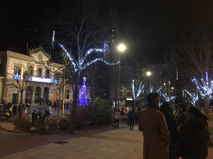 Gabonetako argazkiak piztu zituzten atzo. Laudion Arloteen kantuez lagundurik egin zuten ekitaldia. Amurrion, aldiz, kale antzerkia eta txokolatada egon ziren, besteak beste.