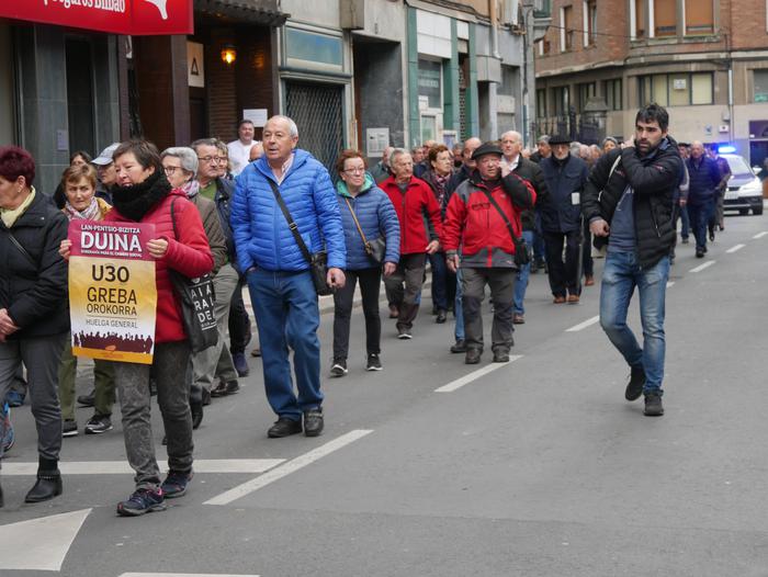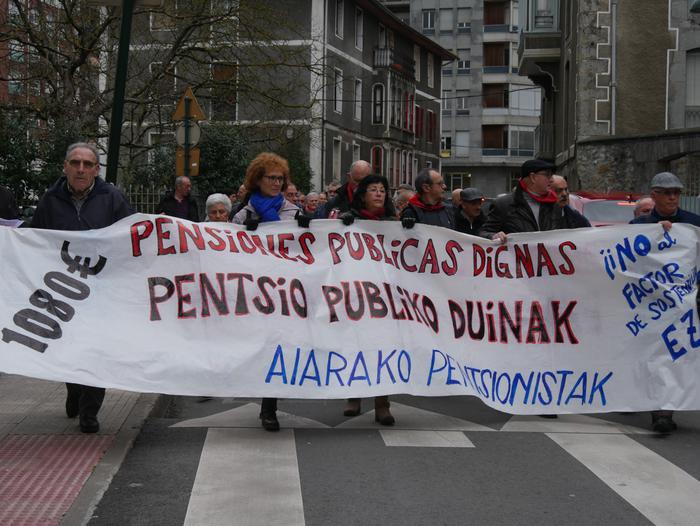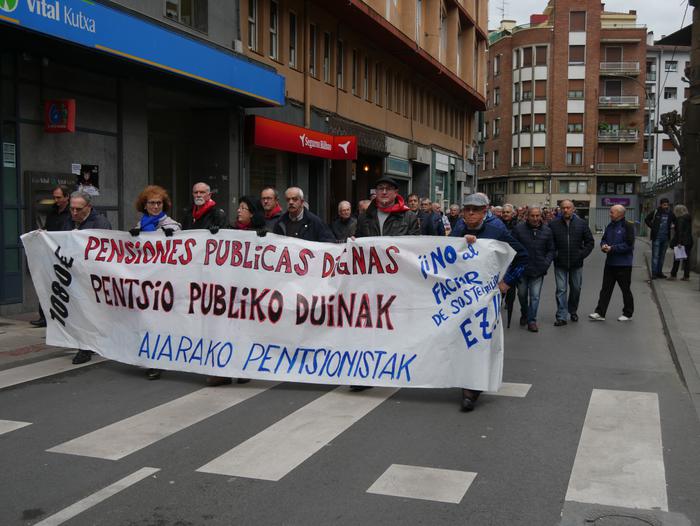 Datorren osteguneko grebaren aldeko pankartak ere eraman dituzte pentsiodunek. Greban, beste kontuen artean, aipatutako pentsio minimoa eta 1.200 euroko lanbide arteko gutxieneko soldata eskatuko dira, baita 2011ko eta 2013ko “pentsio-erreformen neurri murritzaileak indargabetzea” eta 2010eko eta 2012ko lan-erreformak bertan behera uztea, besteak beste.