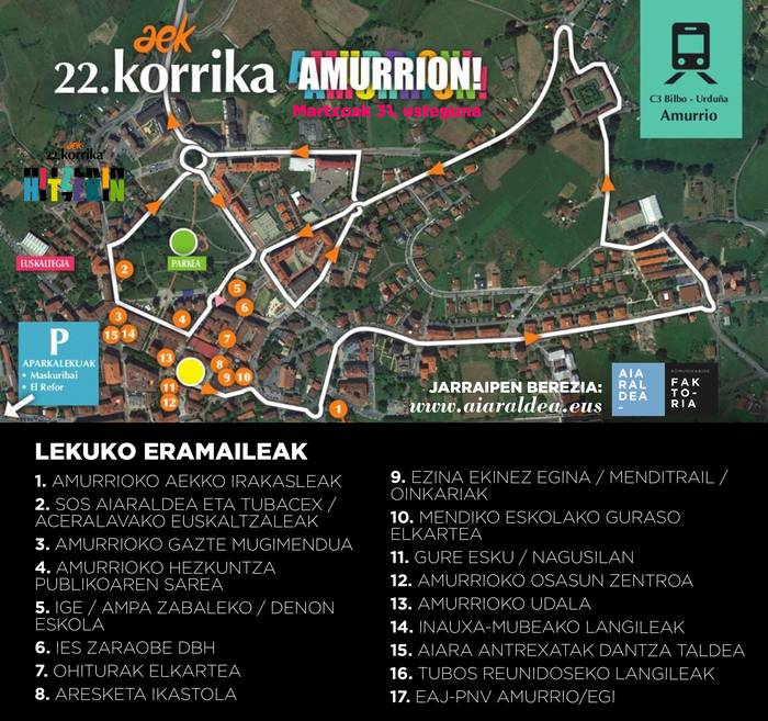 16:30ean abiatuko da Korrika Amurrioko Juan Urrutia plazatik. AEK-ko euskaltegiko sei irakasleek izango dute lehenengo kilometroan mezu ezkutua daraman lekukoa eusteko ardura.