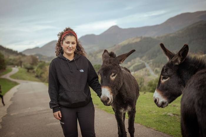 Laudioko Larraño mendian dituen astoak zaintzen dituen bitartean elkartu gara Nahie Larizgoitiarekin. Hamasei urterekin bere gain hartu du etxeko astoen zaintza. Ez dira nolanahiko abereak, Enkarterrietako astoak baizik. Euskal Herriko asto arraza da honakoa, eta mende luzez baserriko lan-indarra izan da, oso erabilia ere meategietako lanetan. Orain desagertzeko arriskuan dago espeziea, eta honen berreskurapenerako elkarte bateko kide da Nahie.