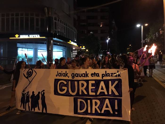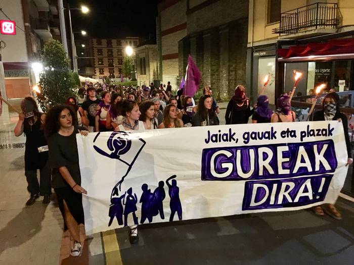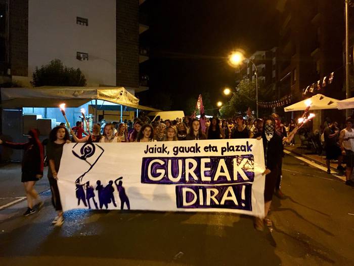 "Jaiak, gauak eta plazak gureak dira" lemapean, manifestazioa egin zuten atzo Amurrion. Arrazoiak ekimenaren hasieran azaldu zituzten: "Ez dugu jaietan, etxera bidean, atzera begira joan nahi. Plazan ta kontzertuetan emakumeak oholtzan, dantzan eta gozatzen egon nahi dugu. Ez duguo babosorik onartuko gure espaziotan...".
