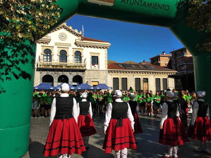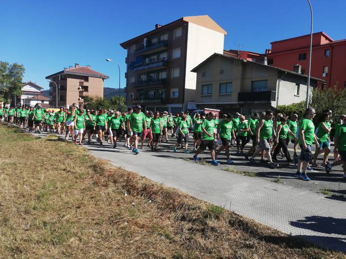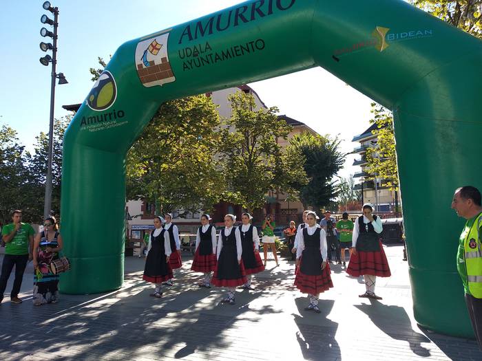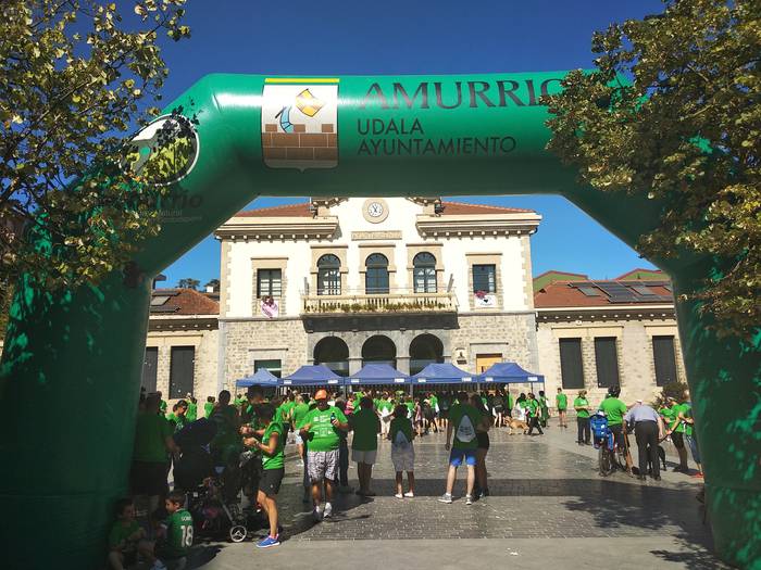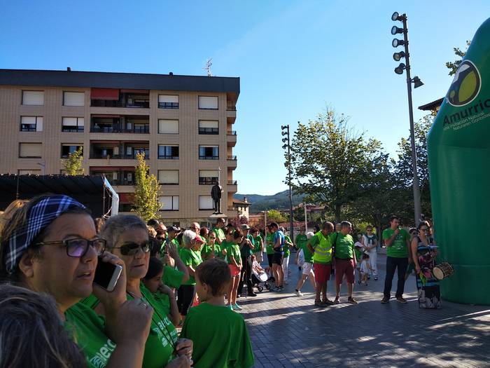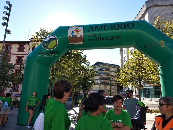 Minbiziaren kontrako lehenengo martxa antolatu dute gaur Amurrion. Ehunka lagun gerturatu dira gaixotasunaren aurkako ekimenera.