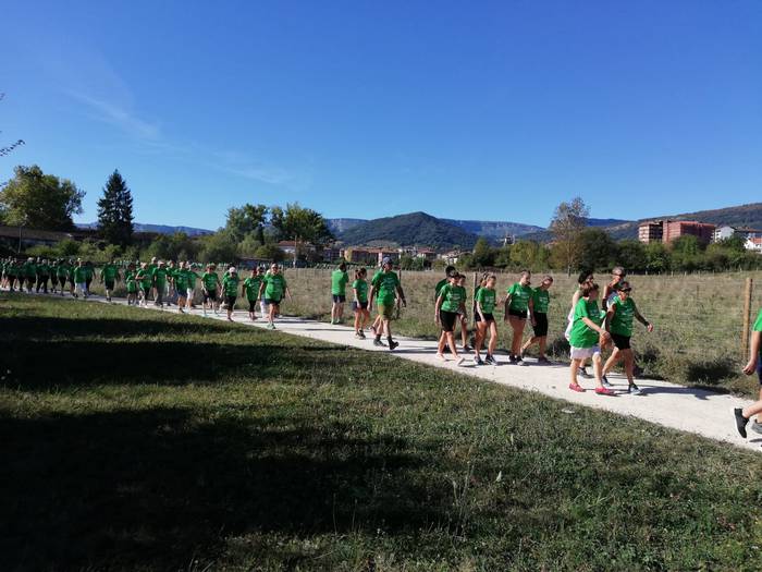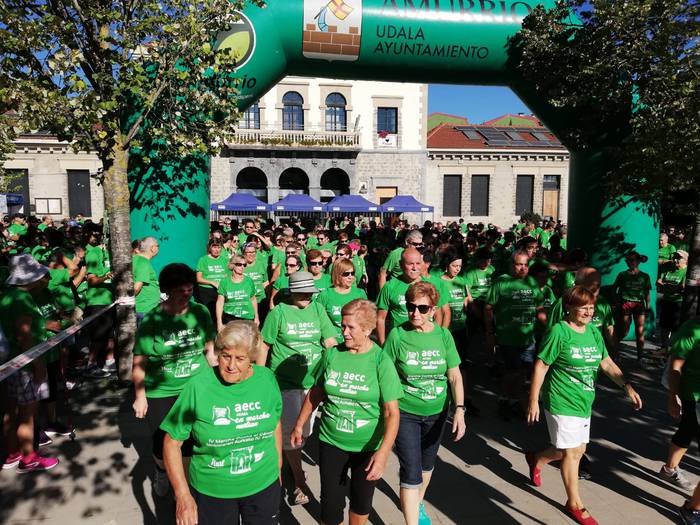 AECC-k (Espainiako Minbiziaren Aurkako Elkarteak) deiturik ehunka lagun elkartu dira gaur goizean Amurrioko Juan de Urrutia Plazatik abiatu den martxan.