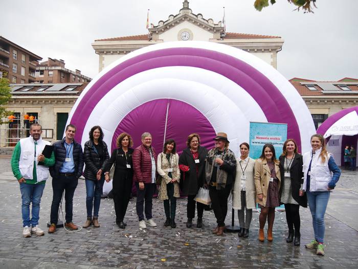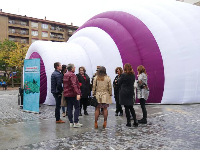 Gaur eguerdian inauguratu du Mugarik Gabe elkarteak "Memoria eraikiz" ikuskizuna. "Zentzumenen esperientzia" gisa definitu dute egitasmoa. Indarkeria matxistari aurre egin dioten 28 emakumeren lekukotzak bildu dituzte, ikus-entzunezko formatu interaktibo batean.