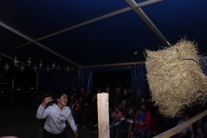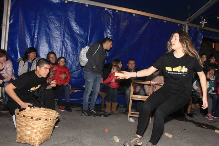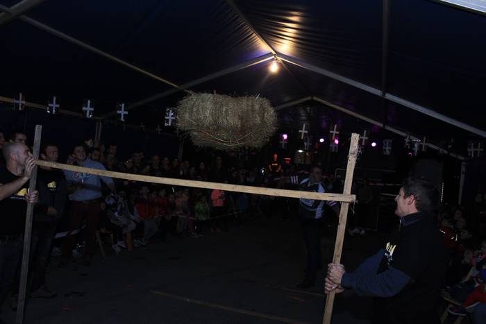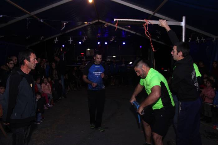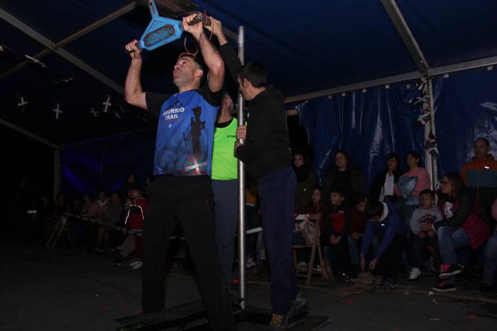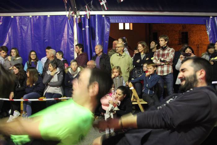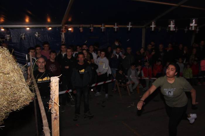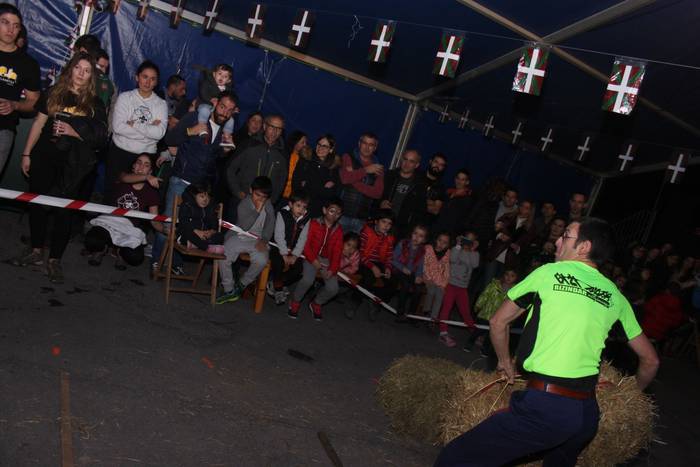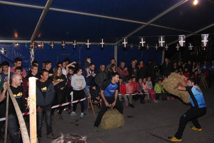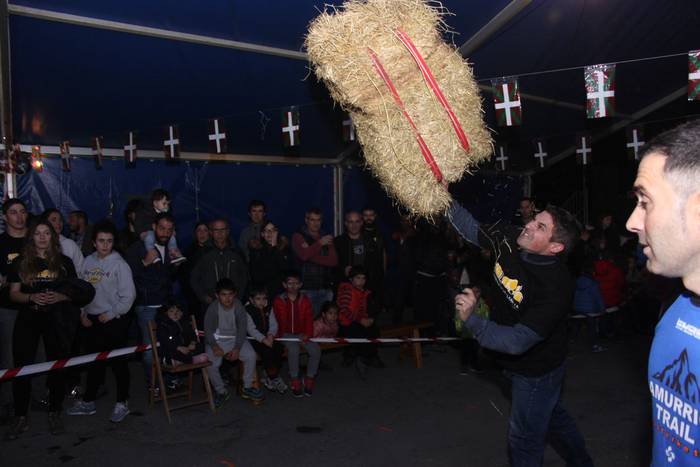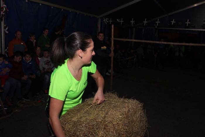 Bost proba gauzatu behar izan zituzten parte hartzaileek: lokotx bilketa, sokatira, ingudea, trontza eta belar fardel jaurtiketa. Azken proba horrek Lezaman du jatorria. Herrian abeltzain asko zeudenez baserritar gehienak trebeak ziren belar fardelak jaurtitzeko, eskuz pilatzen baitziren atoietan garraiatzeko zein lastategietan gordetzeko. Gaur egun trebezi hori galdu da, geratzen diren baserritarrek traktorez mugitu behar diren fardel handiak erabiltzen baitituzte.