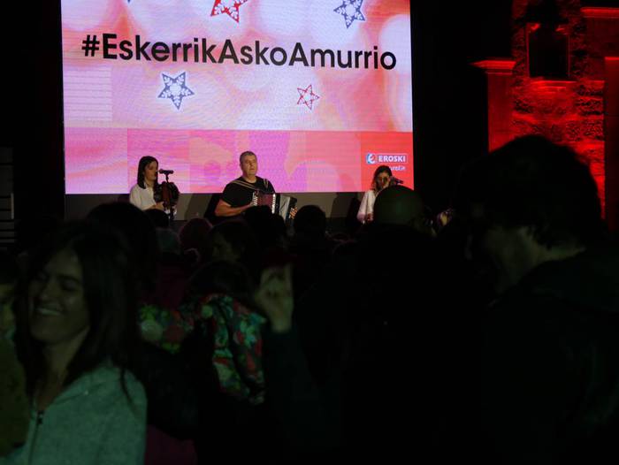 Amurrioko Udaletxean proiektatuta argi ikuskizun batekin eskertu zuen atzo Eroskik amurrioarrek supermerkatu katearen elkartasun ekimenetan izan duten parte hartze handia. Eli Pinedok aurkeztu zuen ekitaldia eta Kepa Junkerak kontzertua eskaini zuen.