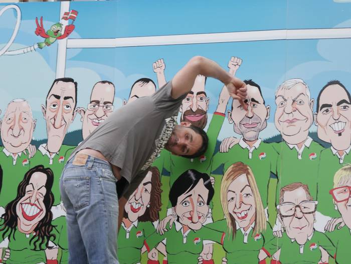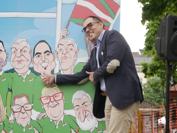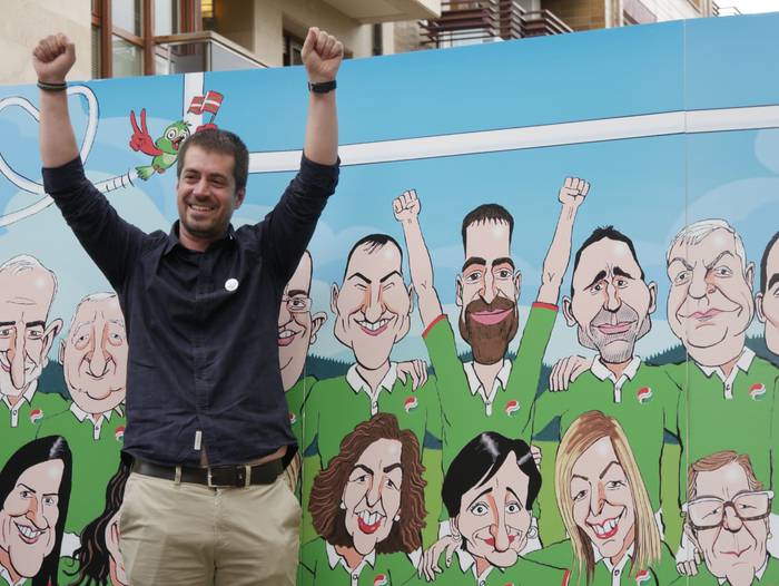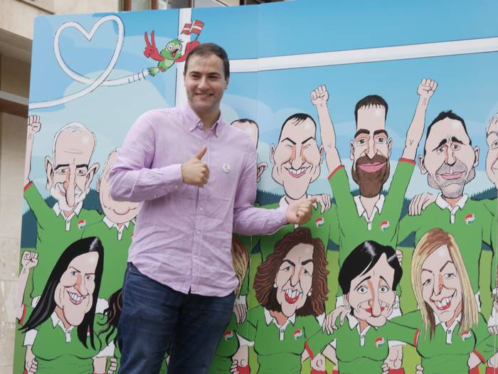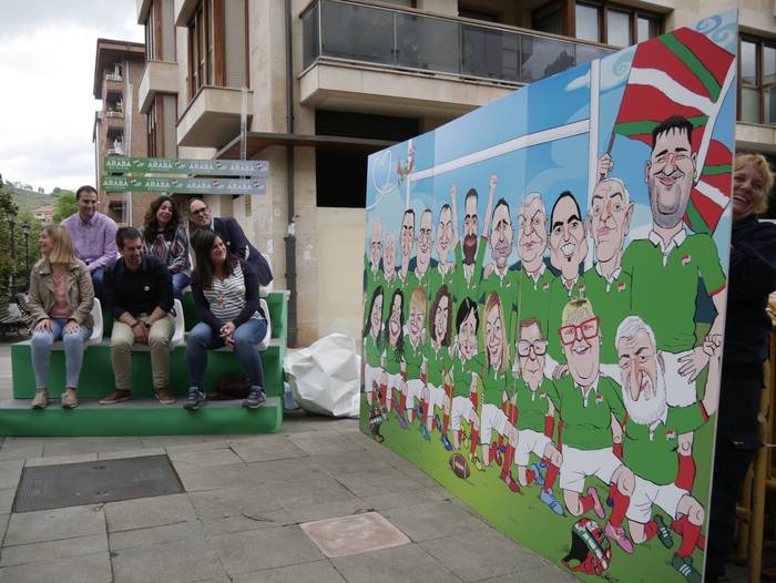 “Umore ukitua” eman nahi izan diote ekitaldiari. Horretarako, Asier Sanz marrazkilariak eginiko lan bat plazaratu dute, zeinetan zerrendako kide guztiak agertzen diren karikaturizaturik, errugbi talde bateko jokalariak izango balira bezala. Jeltzaleek duten “ilusioa, lan egiteko gogoa eta konpromisoa” islatu nahi izan dituzte horrela.