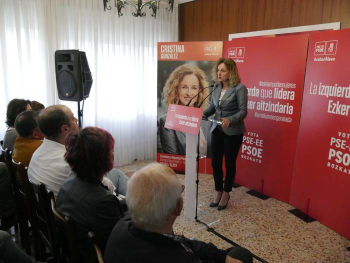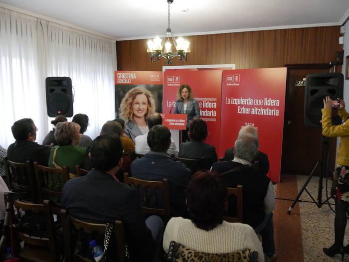 Cristina Gonzalez izan da hitz egiten azkena. Maciasek landutako ildoa jorratu Ahaldun Nagusirako hautagaiak. AP-68 autobideko hobariak Bizkaiara zabaldu nahi dituzte aipatu du, besteak beste. Bere hitzetan, Alderdi Sozialista da “ezkerraren alderdi erreferentea”. Gauzak hala, boto sozialista bakoitza “funtsezkoa” dela nabarmendu du Gonzalezek, “langabezia jaisteko, besteak beste”. Datuak jarri ditu mahai gainean, azken urteetan eskualdeko langabezia jaitsi egin dela gogoratzeko.