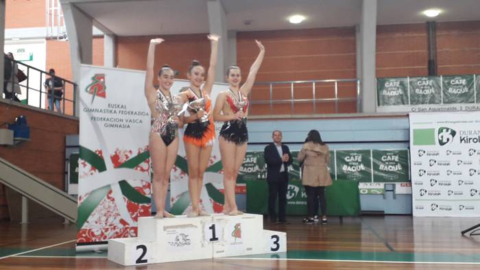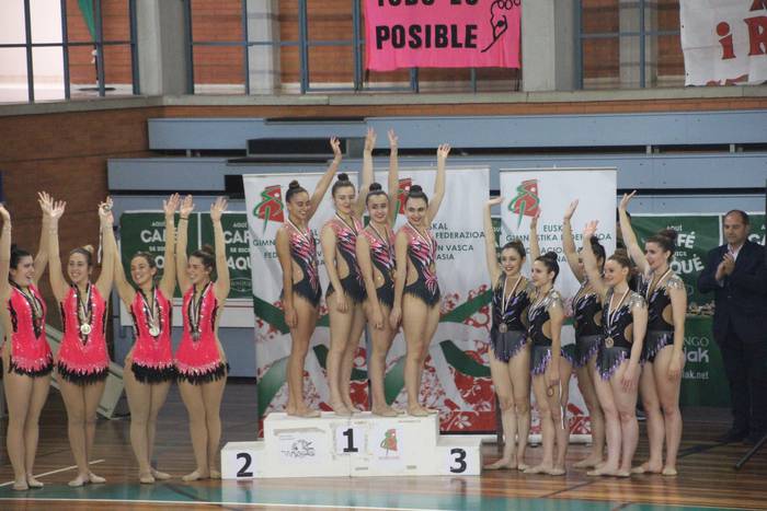 Larunbat goizean klubeko nagusienek, Seniorrek, 3. postua lortu zuten sekulako ariketa egin ondoren. Oihane Ussia, Ane Barrenengoa, Maider Gotxi, Amara de Frutos eta Nitai Romay poz-pozik igo ziren podiumera. Euren entrenatzailearen hitzetan, “izugarrizko denboraldia egin ondoren hau da merezitako saria. Oso harro nago egin duten lanarekin, gimnasta oso onak dira eta agur esateko modurik onena aukeratu dute: Euskadiko Txapelketatik domina ekartzea”.