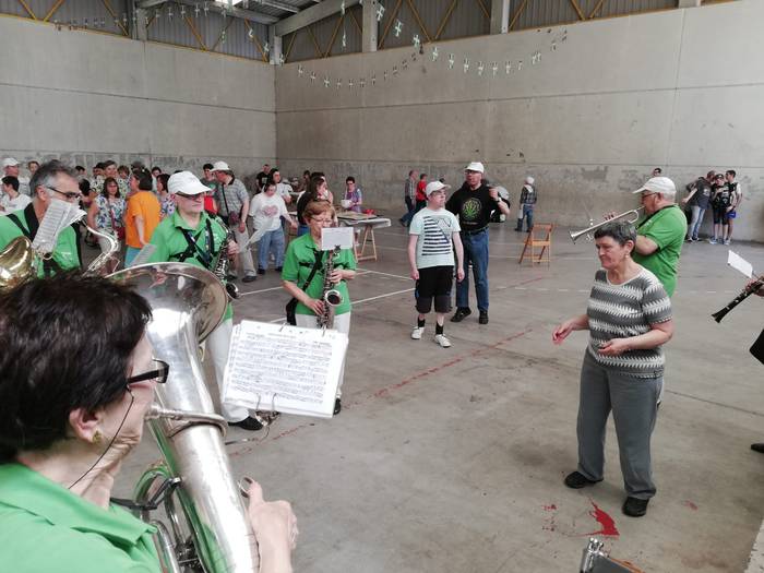 Eguraldia lagun, dozenaka lagunek parte hartu zuten atzo Apdemaren baitako Gazte Alaiak taldeak antolatutako jaian. Juan Urrutia plazan hasi zuten festa, eta Matiasera mugitu ziren gero. Bertan egin zuten bazkaria.