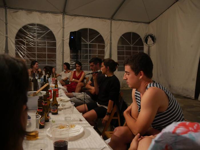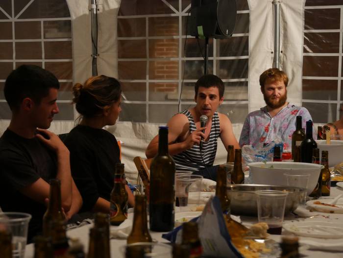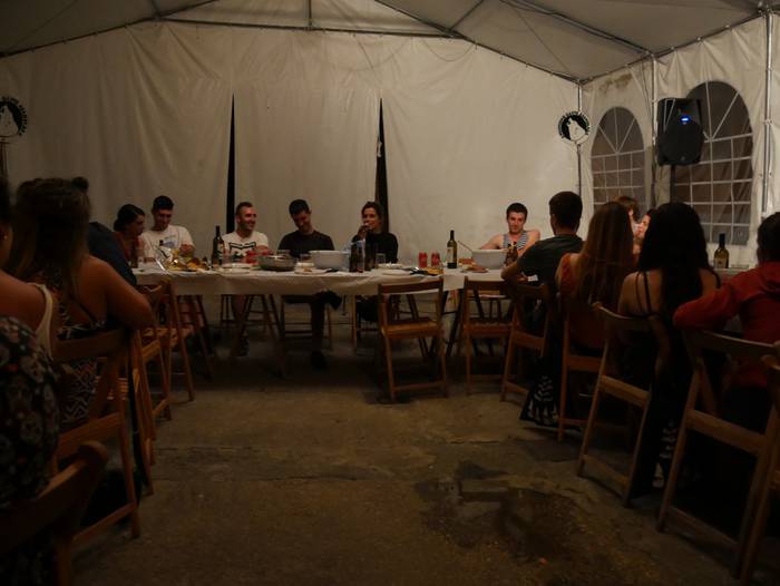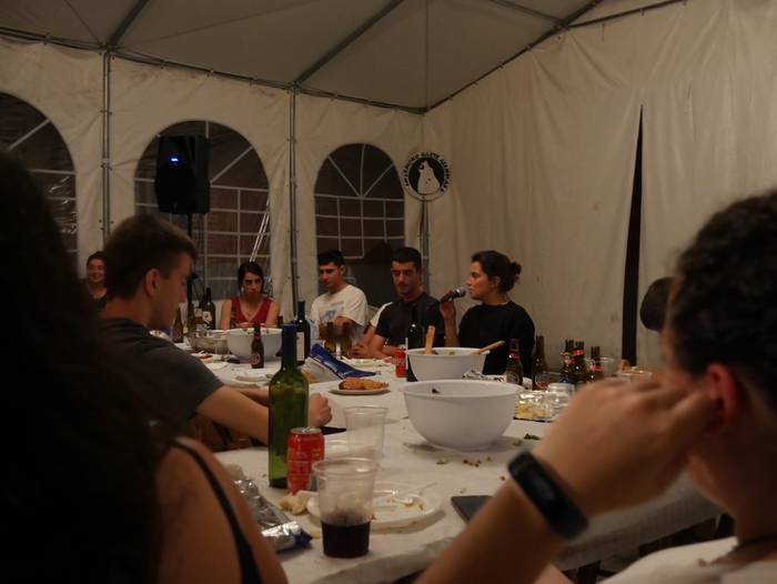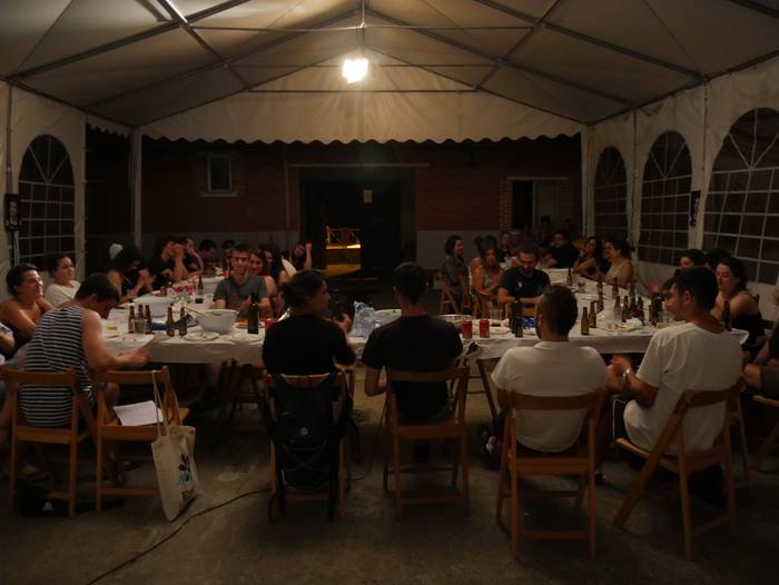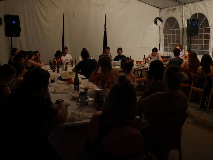 Dozenaka lagun bertaratu ziren atzo Amurrioko Gaztetxera, guneare 5. urteurrena ospatzeko asmoz. Bertso afaria egin zuten bertan, Peru Abarrategi eta Maider Arregi bertsolariekin.