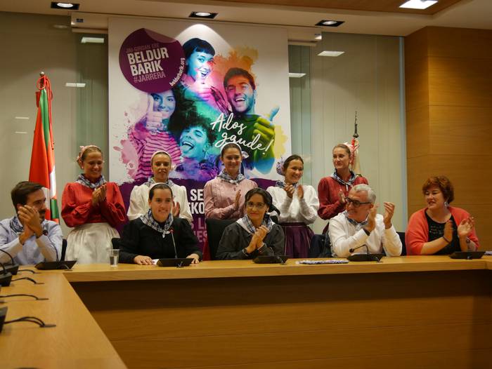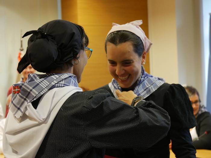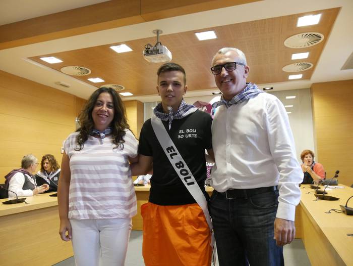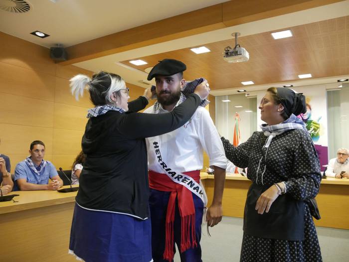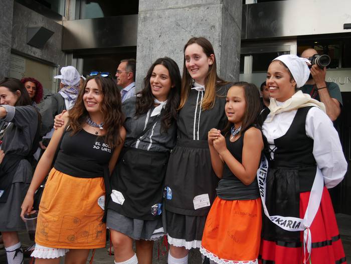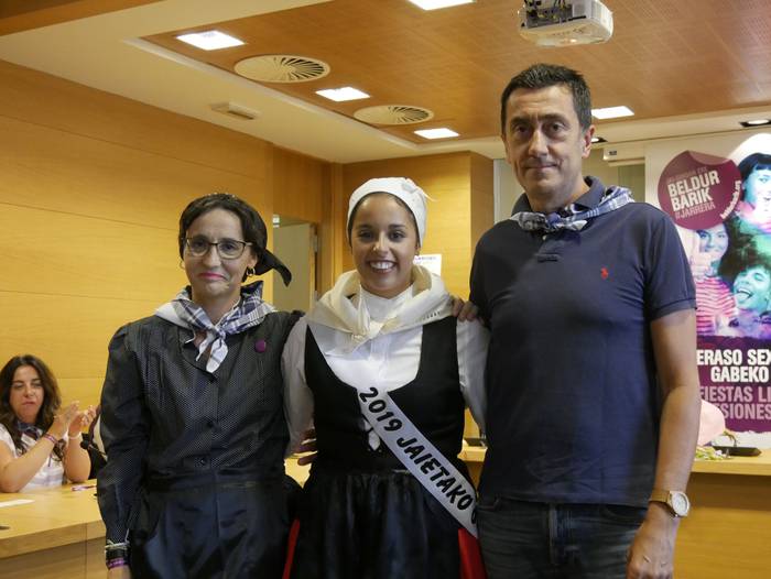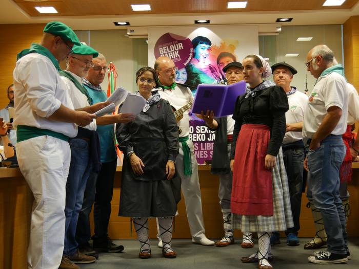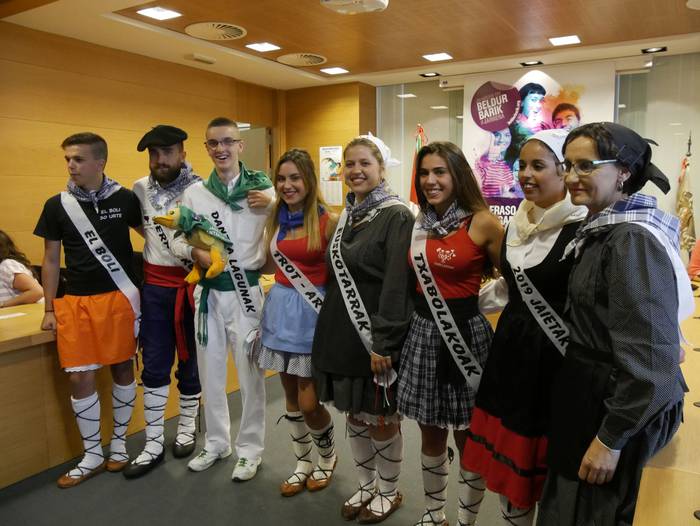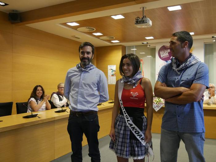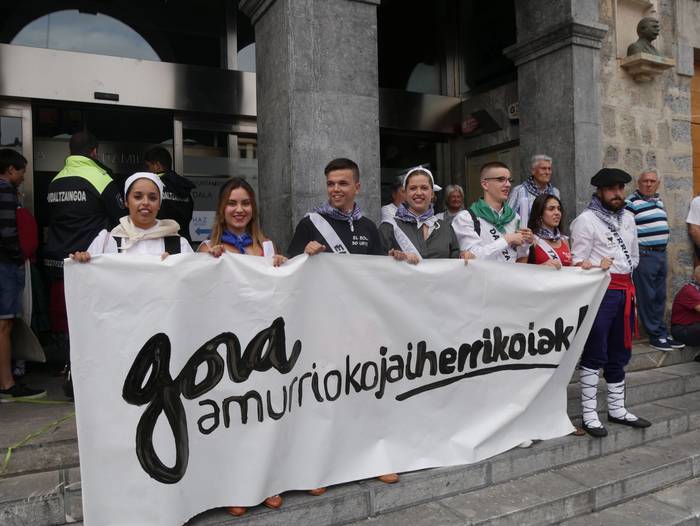 Josune Irabien alkateak "jai zoriontsuak" eta "errespetuzkoak" opatu dizkie amurrioarrei. Zentzu horretan, eraso eta jarrera matxistarik gabeko egunak izatea espero duela adierazi du. Jai koadrilen ordezkariei "banda" jarri diete segidan, eta talde argazkia atera dute.