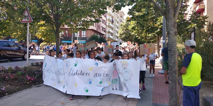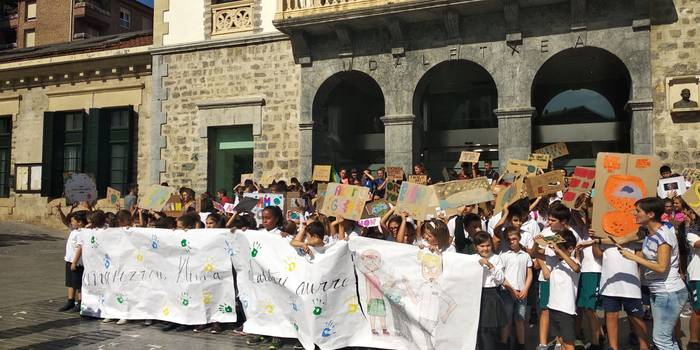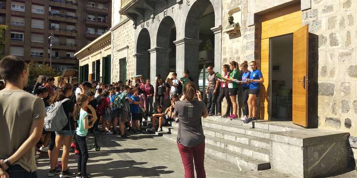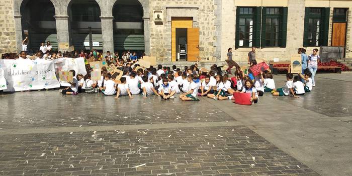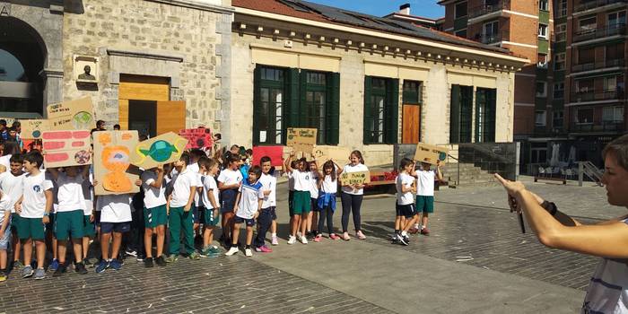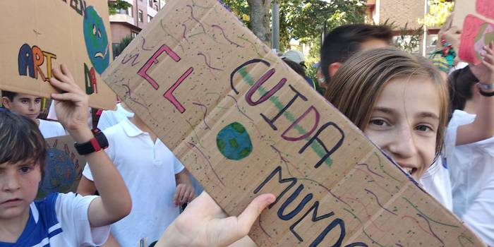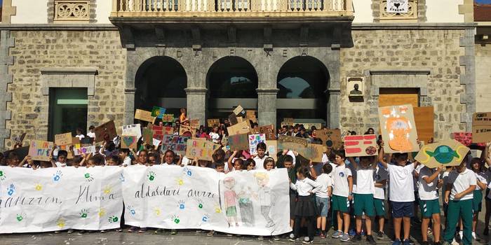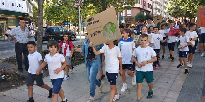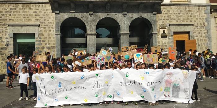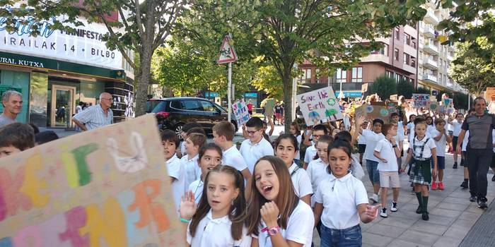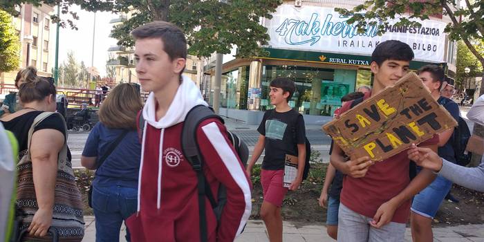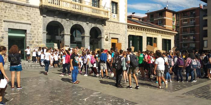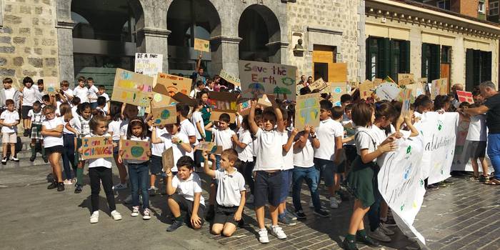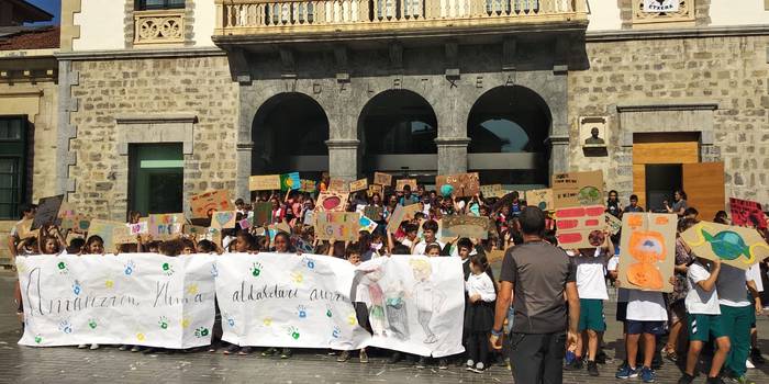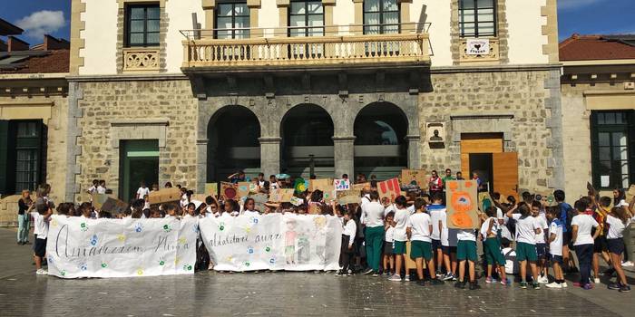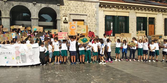 "Amaurre klima aldaketari aurre" lelopean Juan Urrutia plaza hartu eta manifestua irakurri dute ingurumena babesteko neurriak eskatzeko.