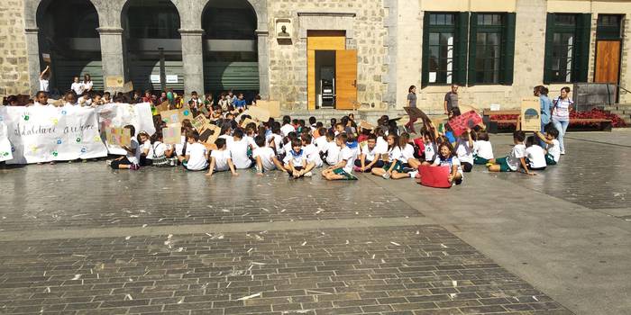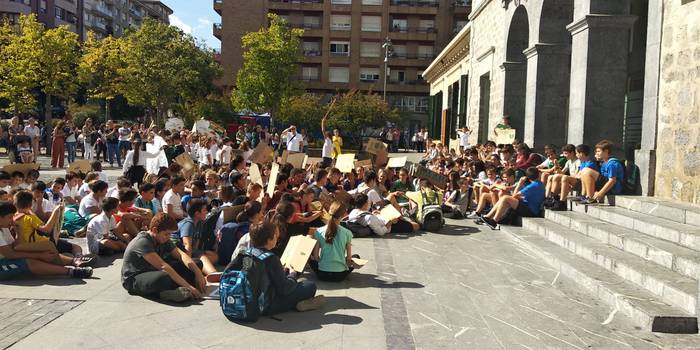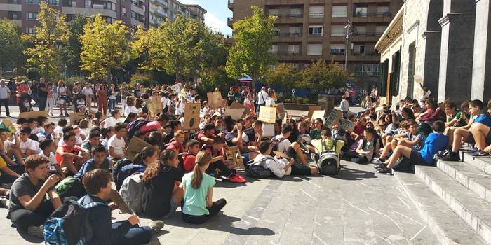 Besteak beste, aldarrikatu dute planeta larrialdi klimatiko egoeran dagoela eta 200 landare eta animali espezie desagertu direla. Hondamendiak gero eta arruntagoak direla ere nabarmendu dute eta B planetarik ez dagoela. Horren ostean, eserialdia egin dute udaletxe aurrean.