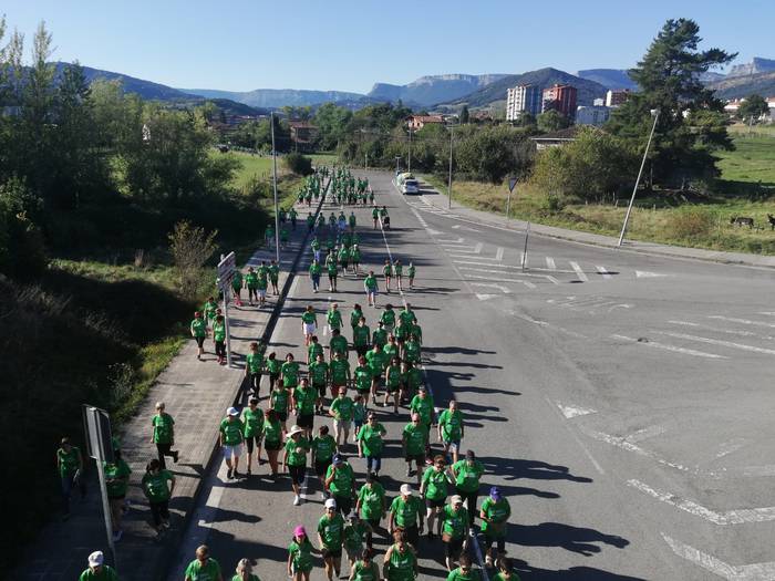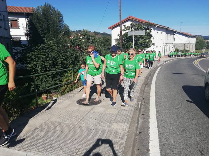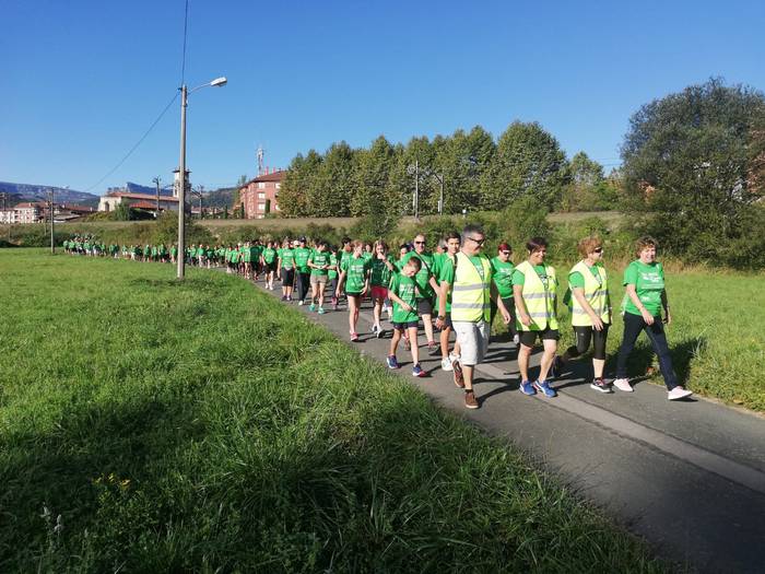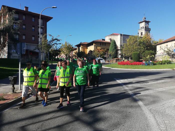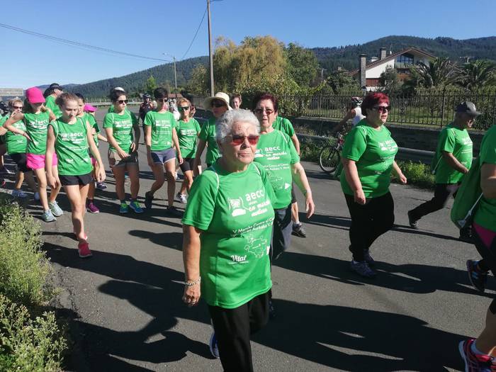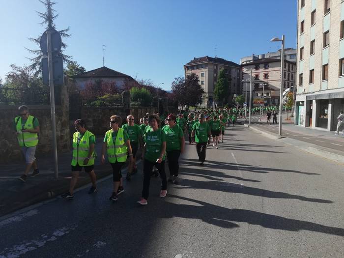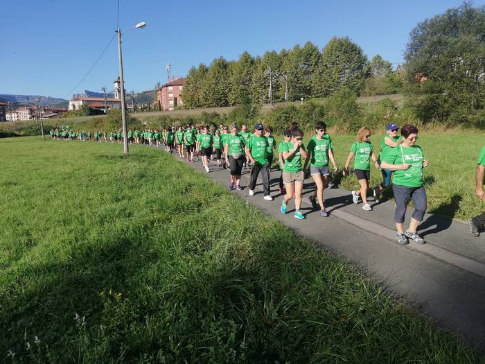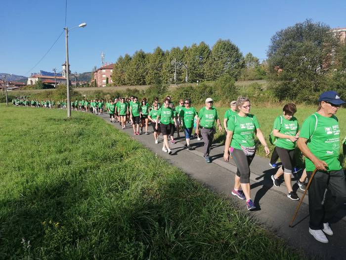 Aurreraka emakume elkarteak antolatu du gaur Minbiziaren Kontrako II. Ibilaldia, Amurrioko Udalaren laguntzarekin. Eskualde osoko ehunka pertsona batu dira 10:30ean Juan Urrutia plazan eta 7 kilometroko ibilbidea bete dute.