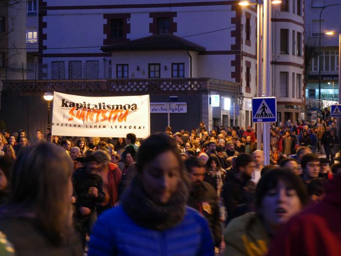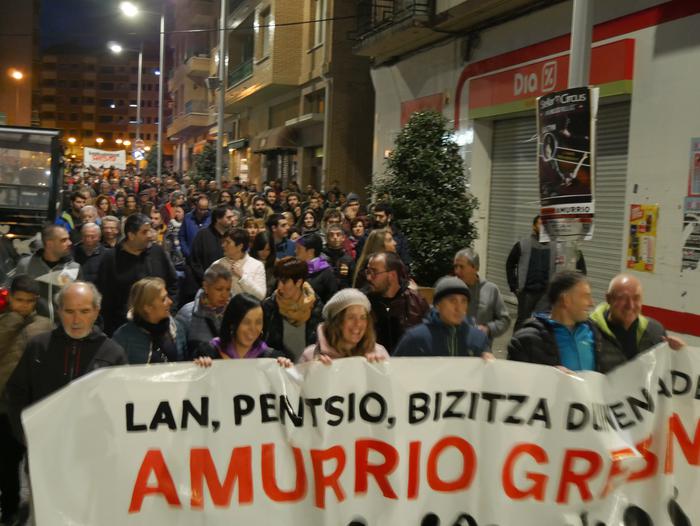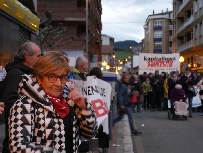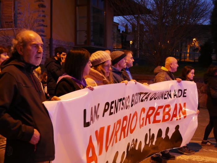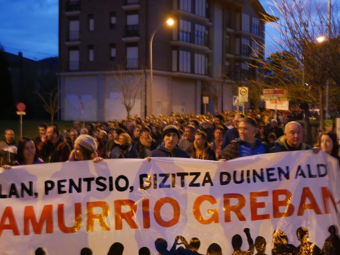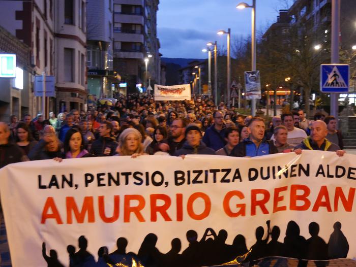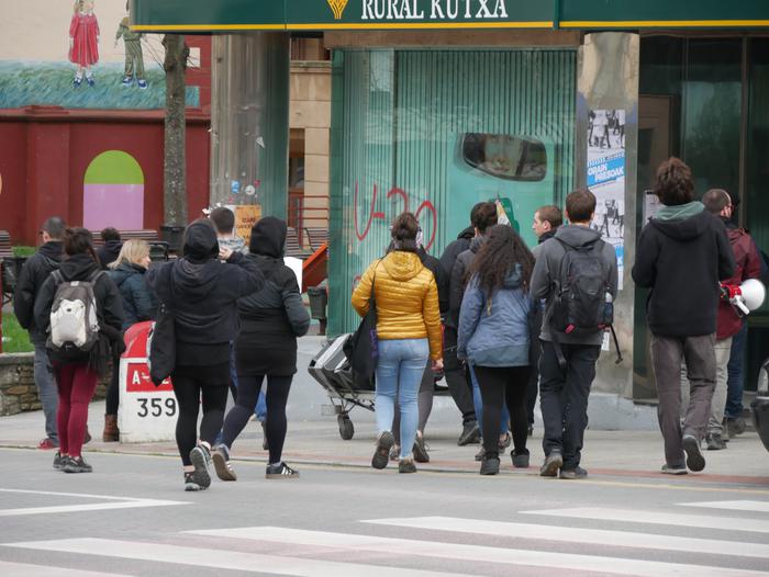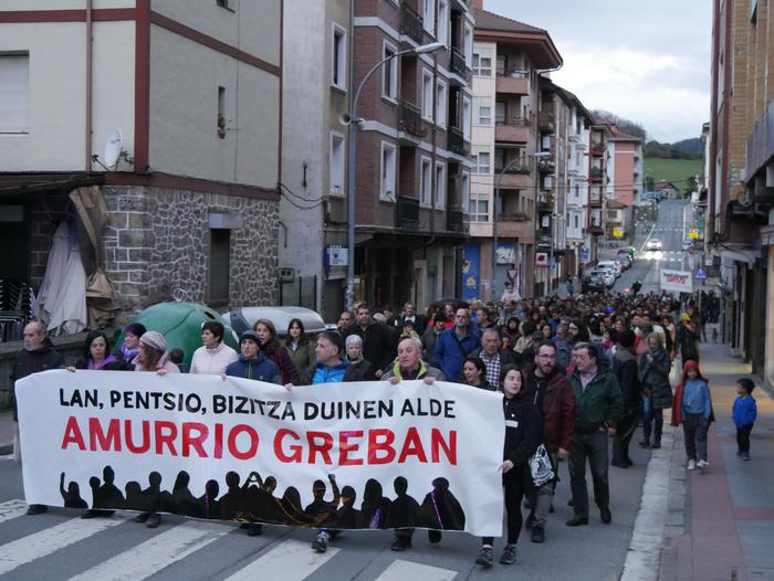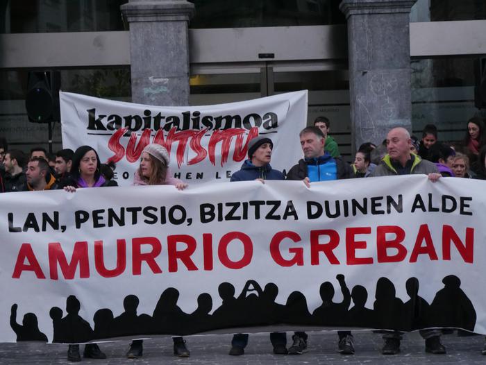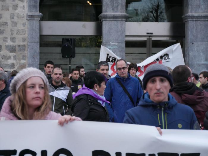 Manifestazioak ibilbide luzea egin du eta joko aretoan, Correosen, Lanbiden, Gizarte Segurantzan, epaitegian eta plazan bertan gelditu da.