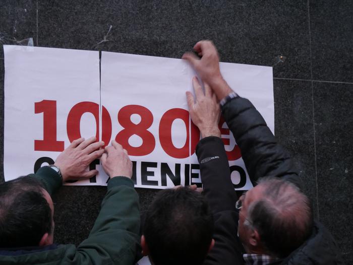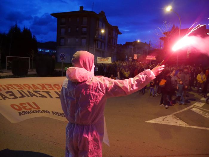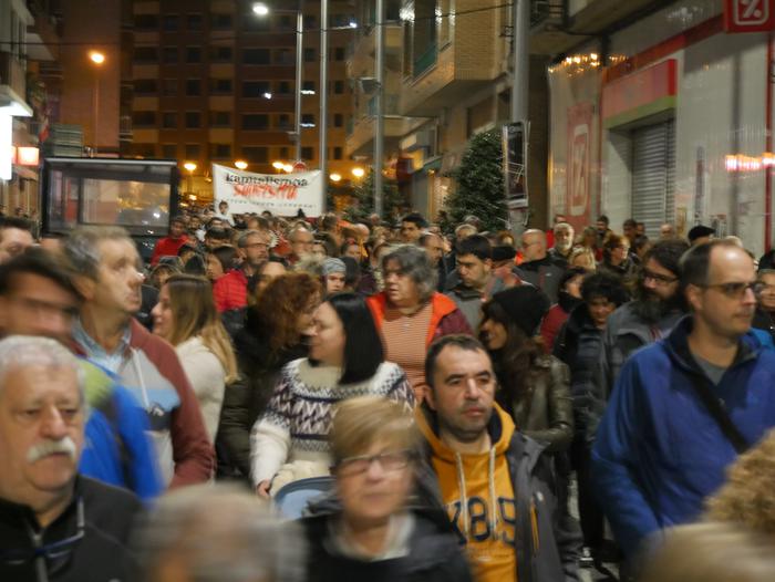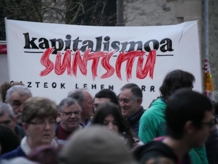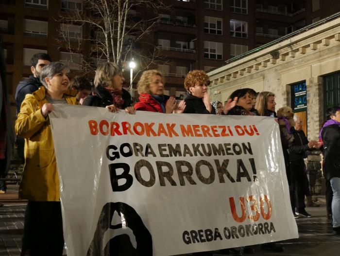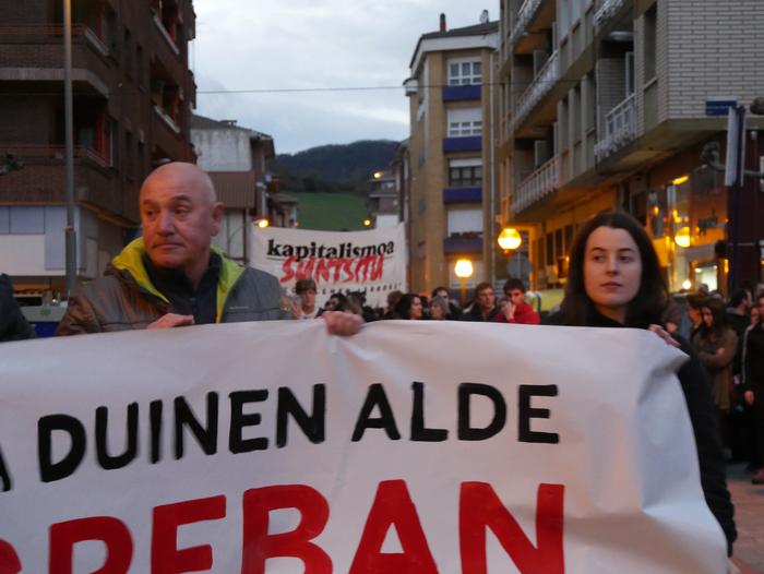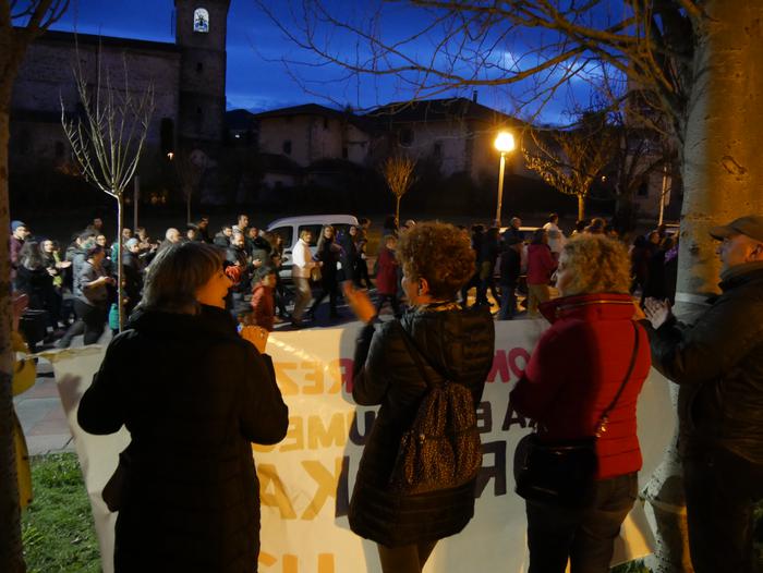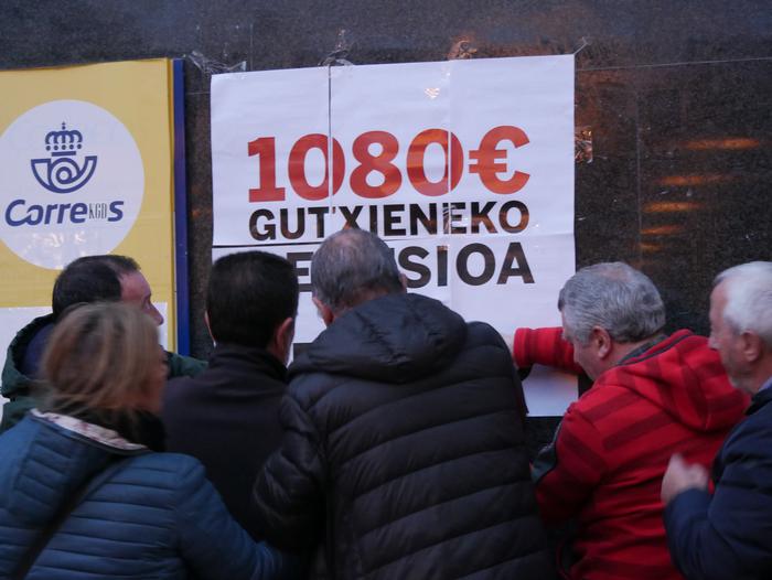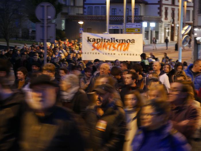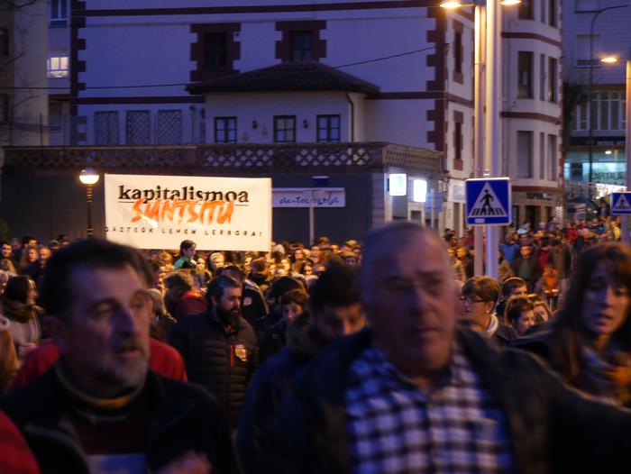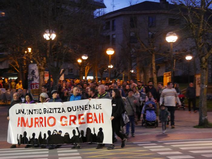 Manifestazioak ibilbide luzea egin du eta joko aretoan, Correosen, Lanbiden, Gizarte Segurantzan, epaitegian eta plazan bertan gelditu da.