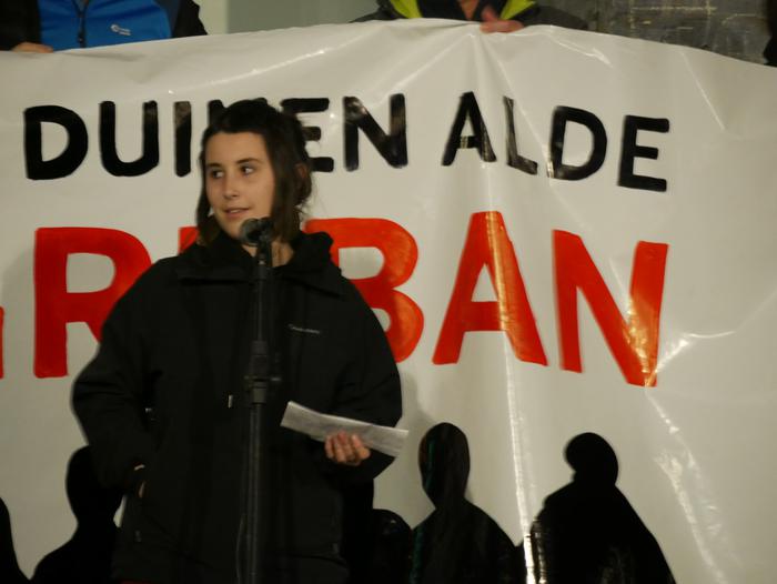 Azkenik, Juan Urrutia plazan berriro pentsiodunen bozeramaile batek hartu du hitza borrokaren garrantzia nabarmentzeko.