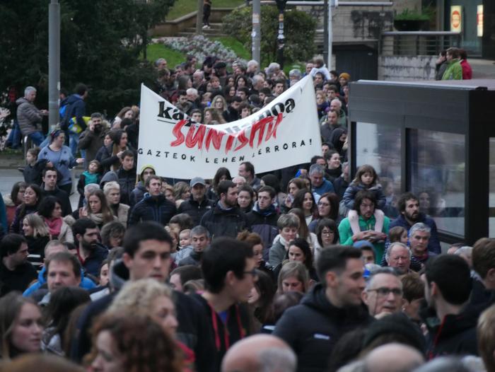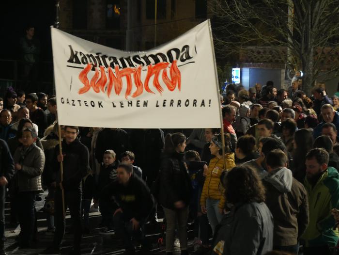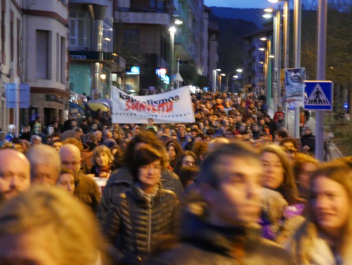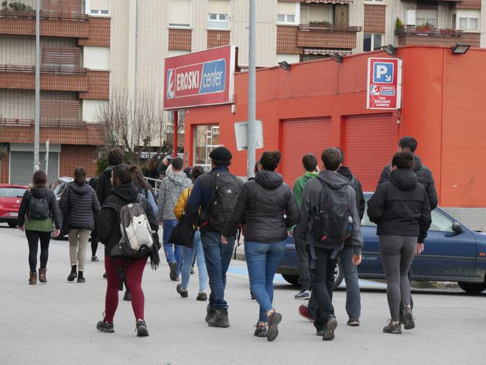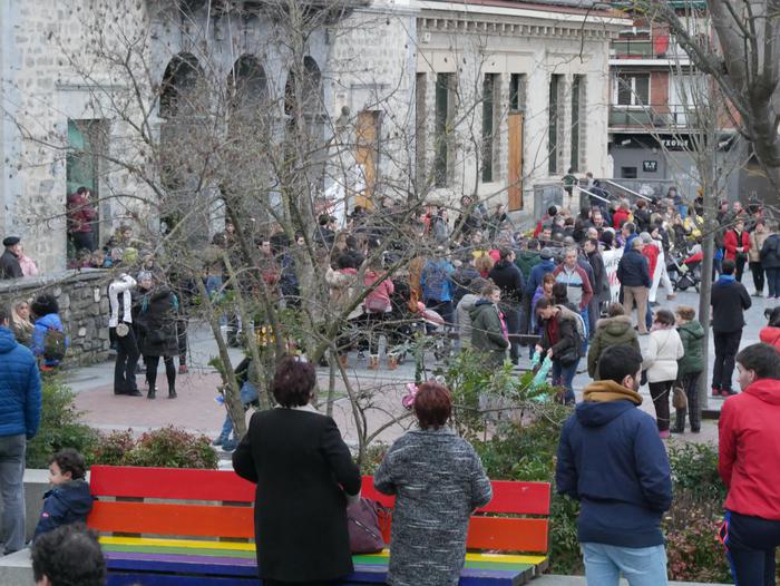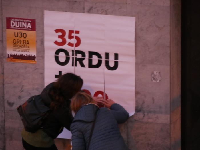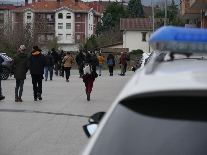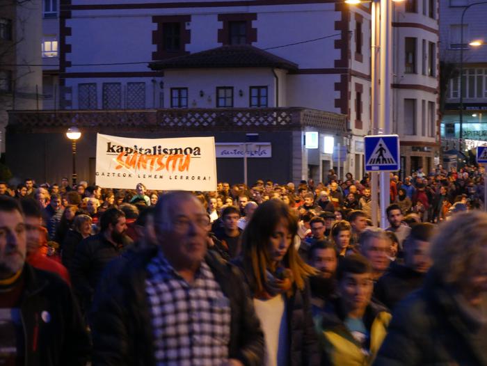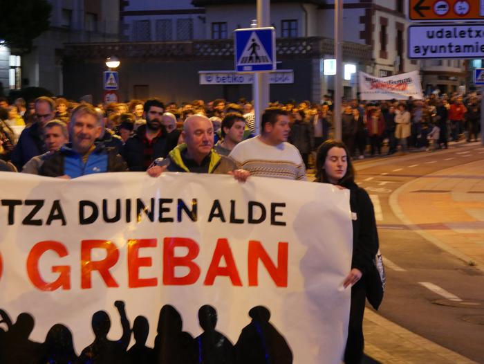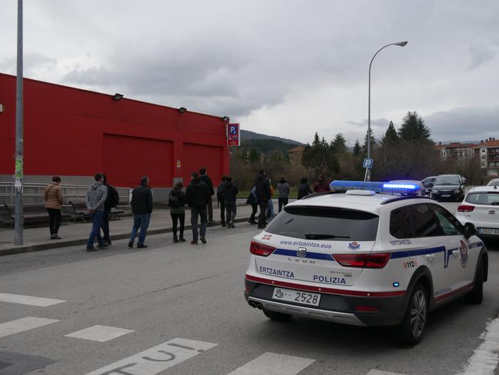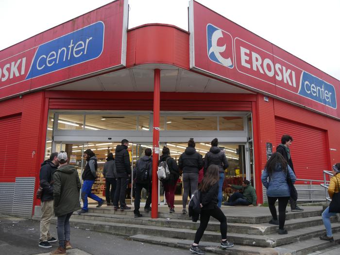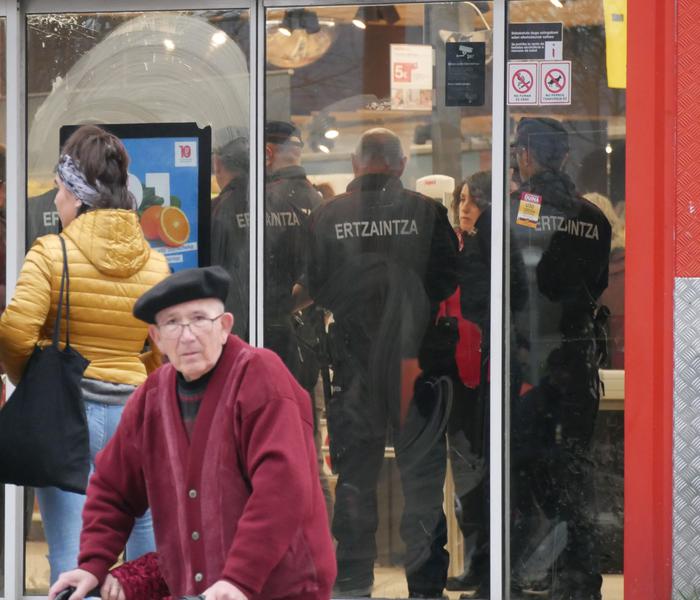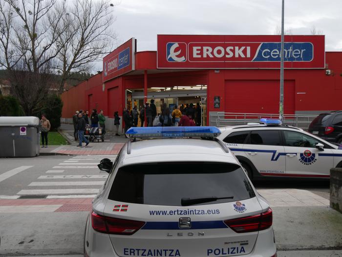 Eroskin piketearen eta langileen arteko eztabaida luzatu da eta, azkenean, 6 ertzain agertu dira supermerkatuan. Talka bukatu ostean, piketea Juan Urrutia plazara joan da eta manifestazioa prestatzen hasi da.