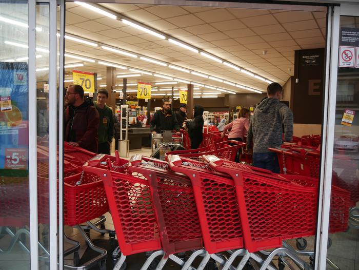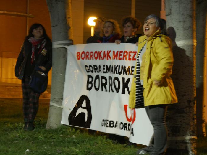 Berriak supermerkatuko langileek pankarta atera dute eta eskerrak eman dizkiete grebalariei. Eurek ere txalo zaparrada jaso dute.