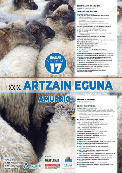Amurriok XXIX. Artzain Eguna ospatuko du aurten irailaren 17an, udako oporretatik bueltako hitzordurik berezienetakoa. Egun honen ospakizunak, sektoreari bultzada bat emateko bereziki pentsatua, hainbat lehiaketa, produktu-dastatze, erakusketa eta gaztagintza eta ardi-mozte erakustaldi eta artzain txakurren erakustaldi tradizionalekin barne hartzen ditu.Goizean zehar, etxeko eta artisau-produktuen azokaz ere gozatu ahal izango da, batez ere Goi Nerbioi eskualdekoak, hala nola gazta, txakolina, ogia eta lurreko beste produktu batzuk.