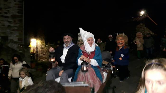 Igande arratsaldean izan ziren Olentzero eta Maridomingi Arakaldon. Sorginlarrenen buruhandi mitologikoek lagunduta iritsi ziren herrira.