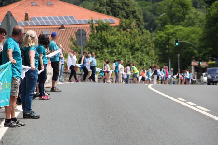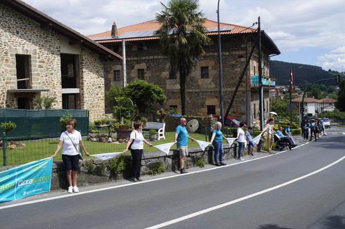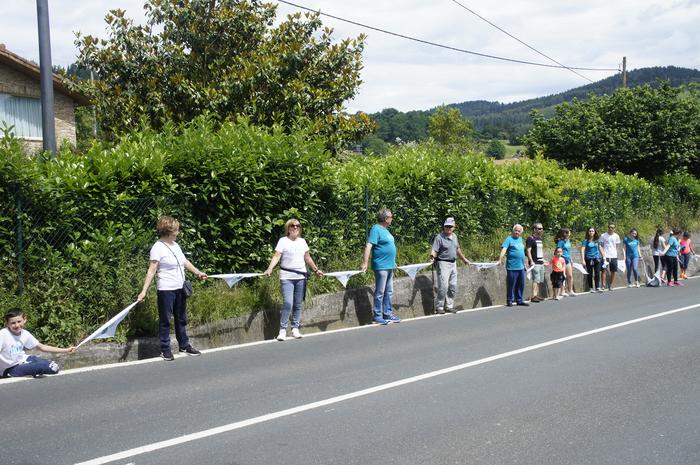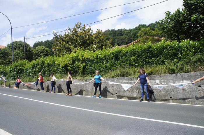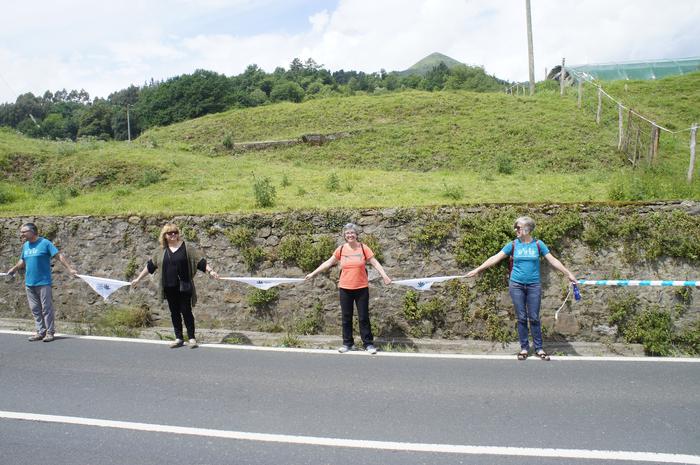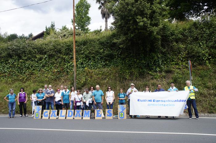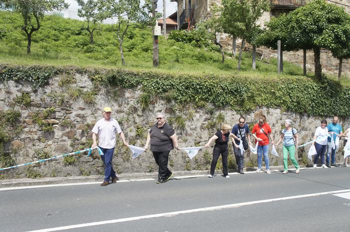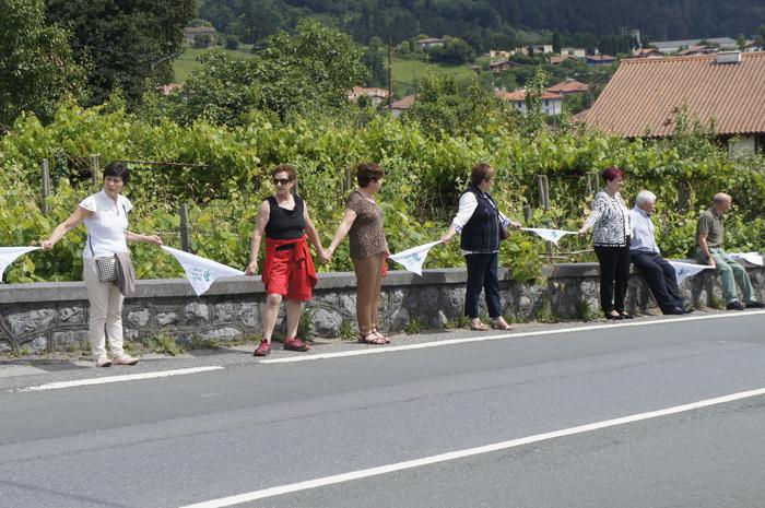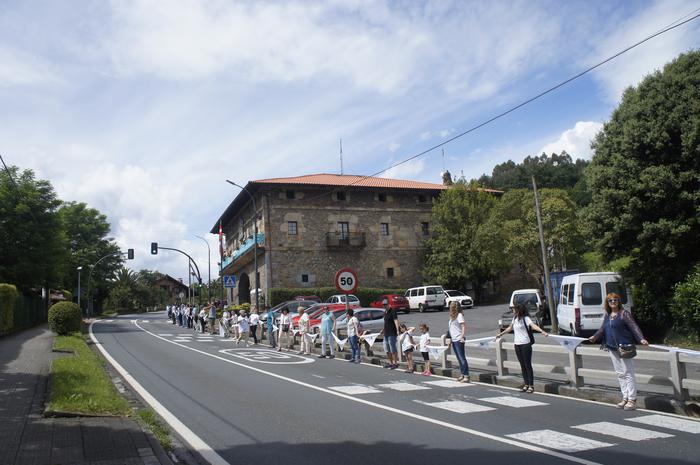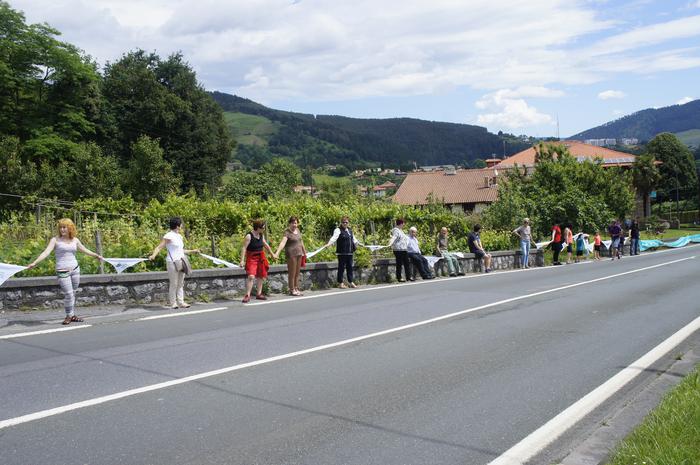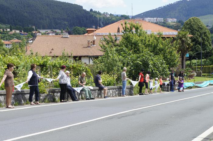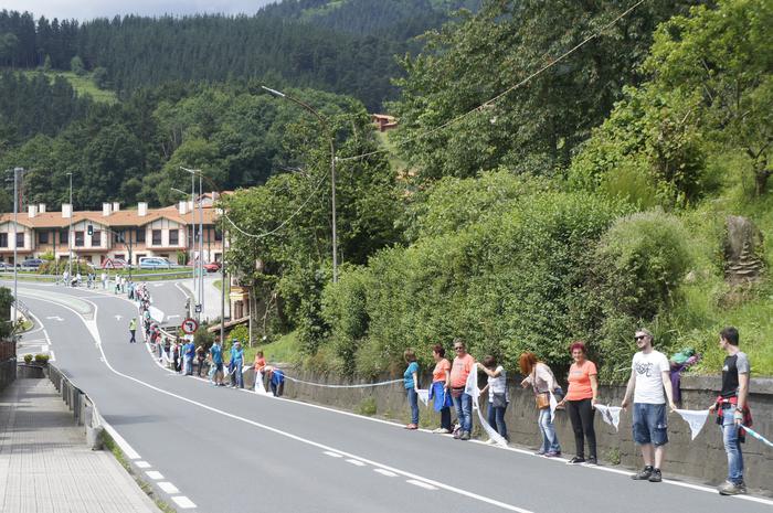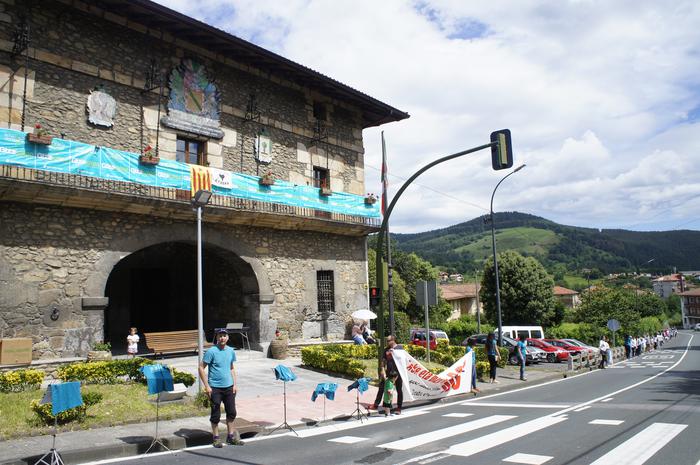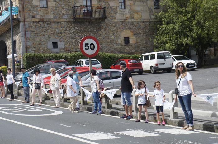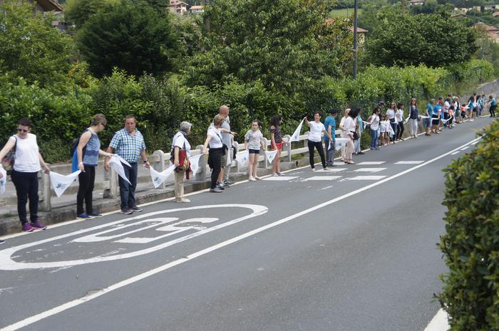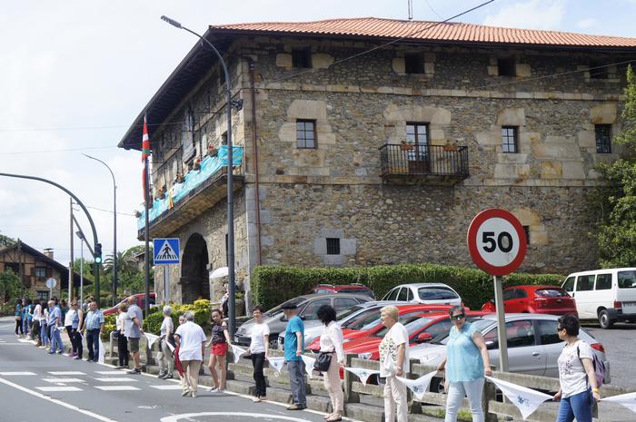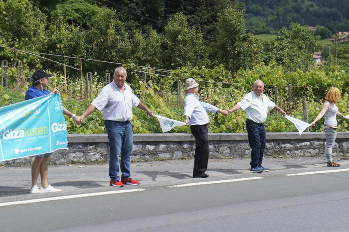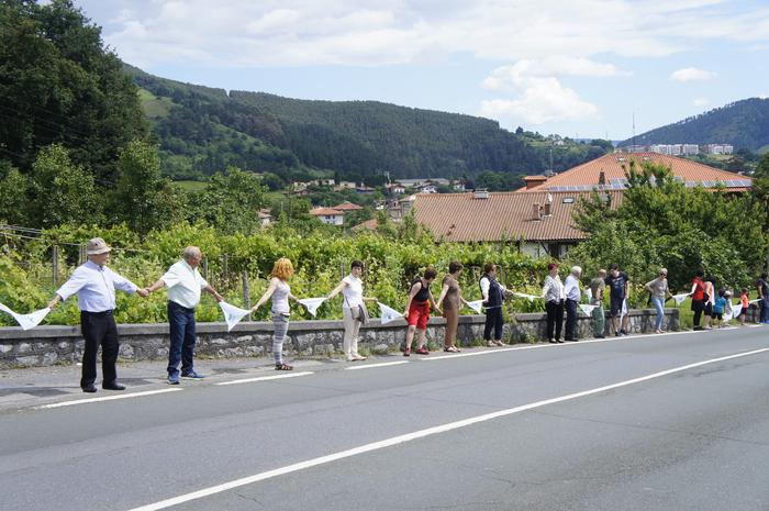 Arrankudiaga eta Zolloko herritarrek Galdameseko lagunekin bat egin dute herrigunean Gure Esku Dagoren giza katean.