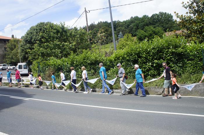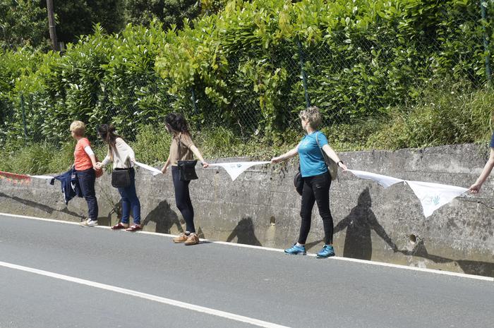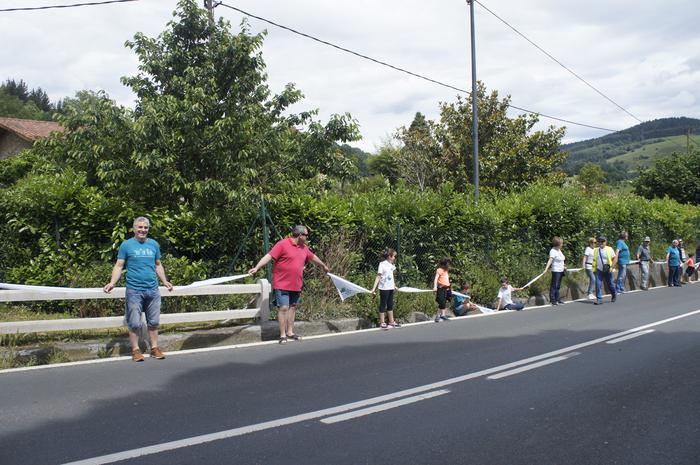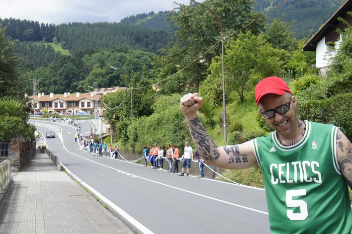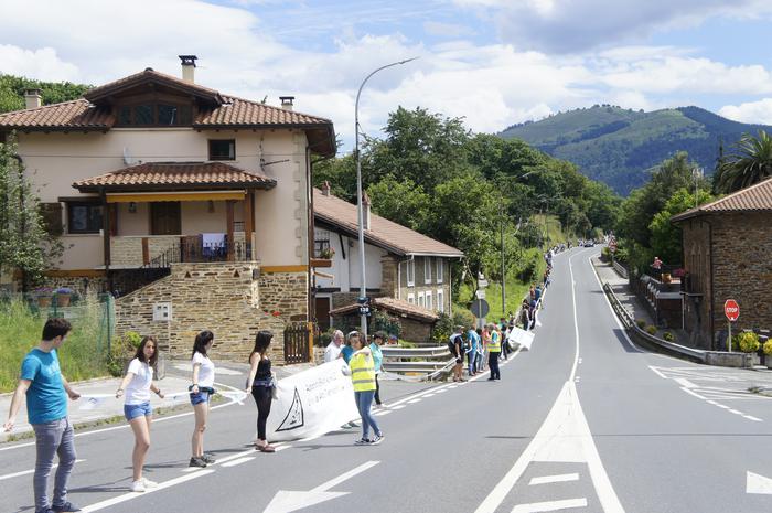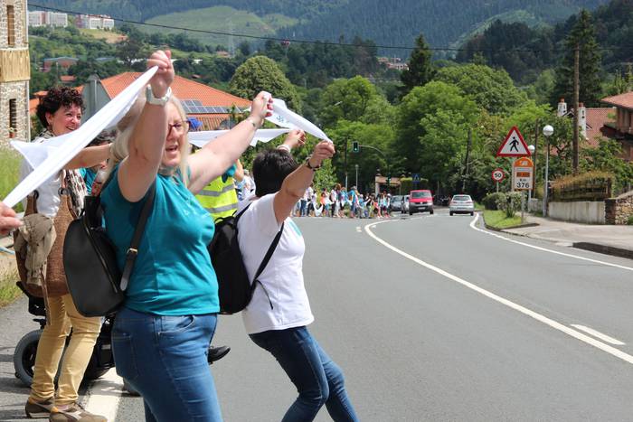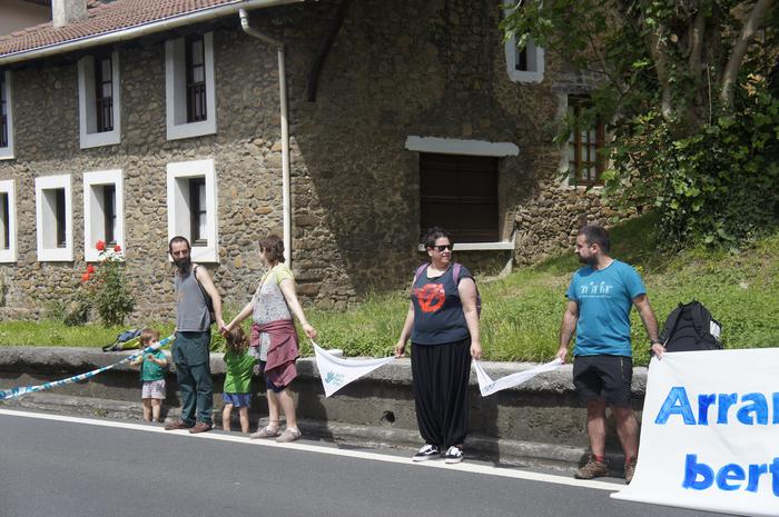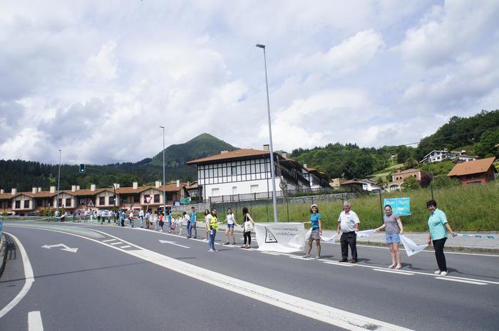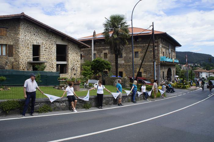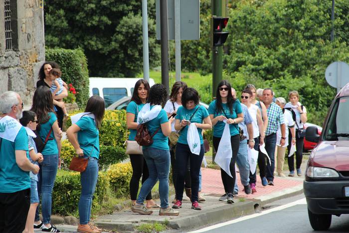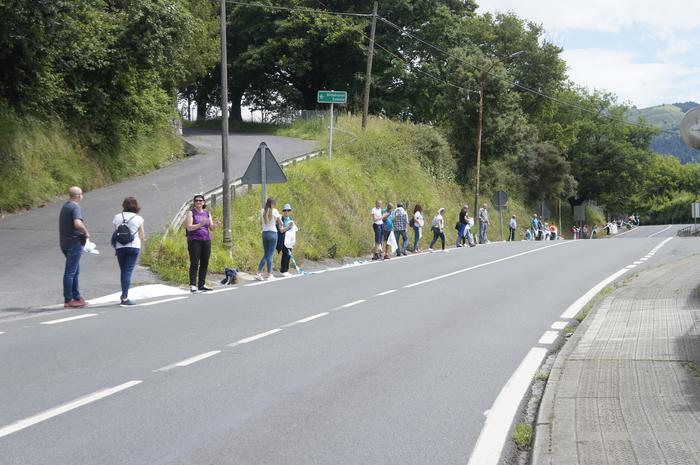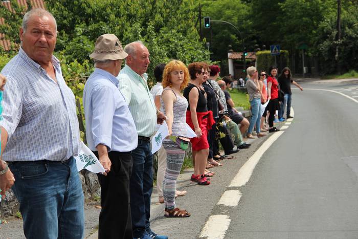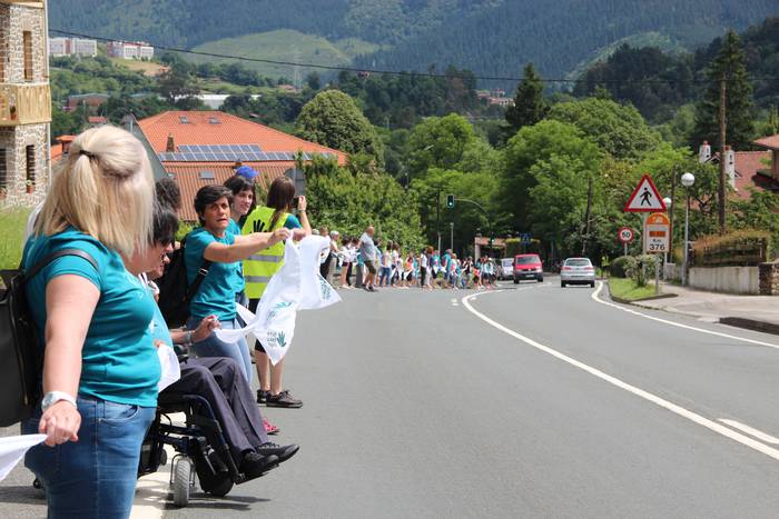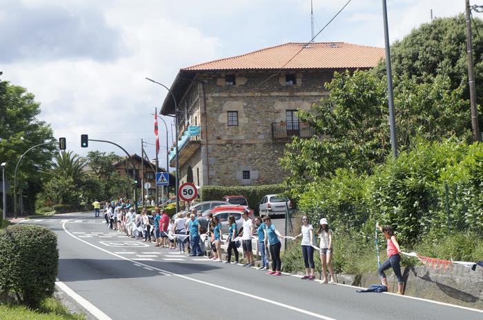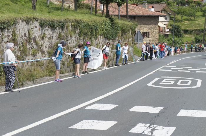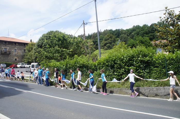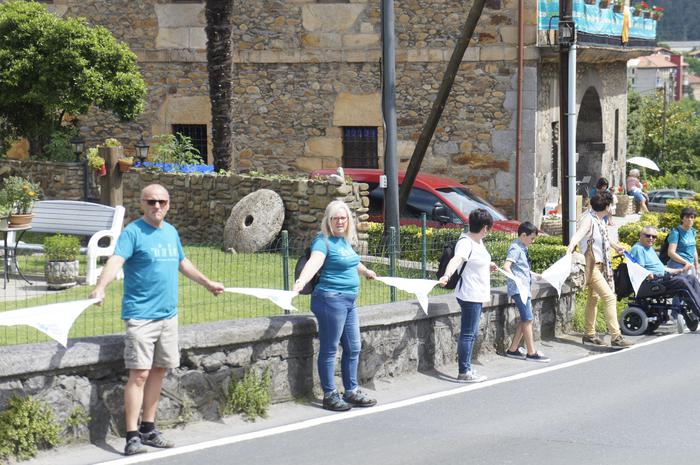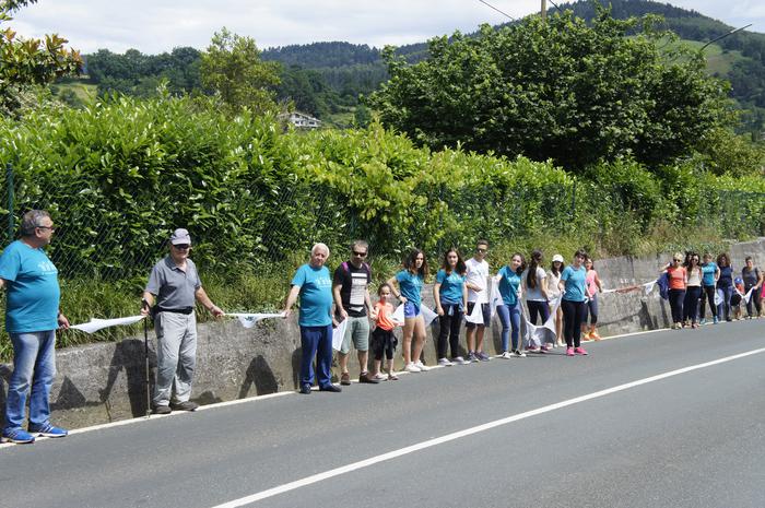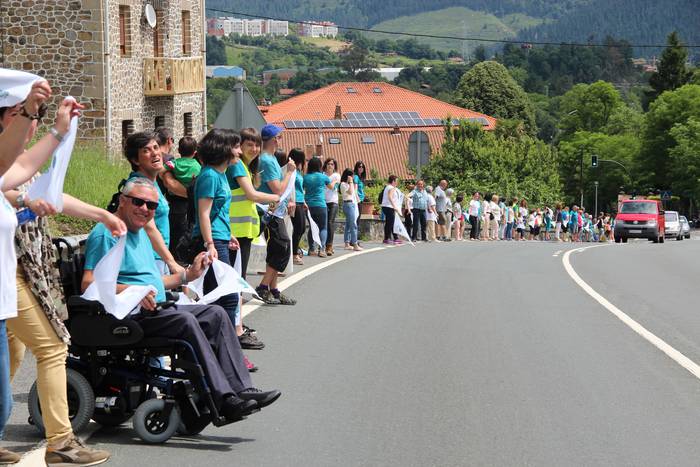 Arrankudiaga eta Zolloko herritarrek Galdameseko lagunekin bat egin dute herrigunean Gure Esku Dagoren giza katean.