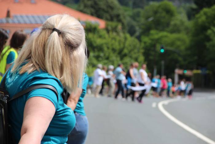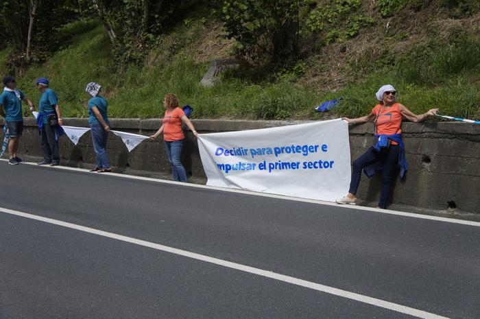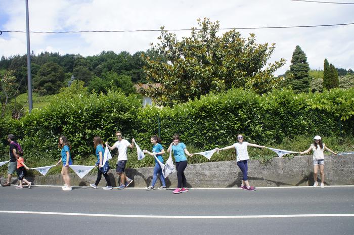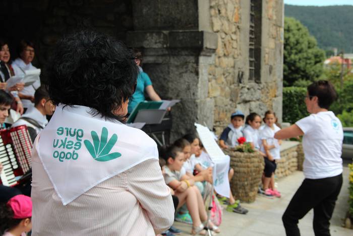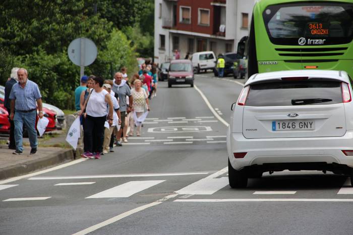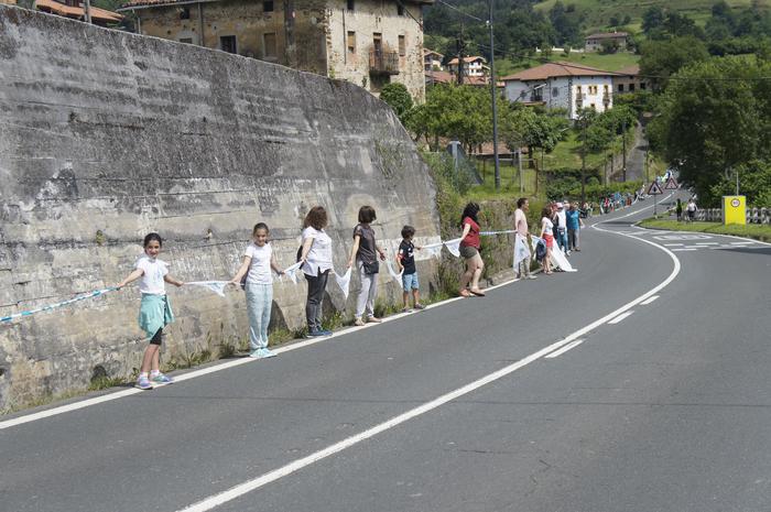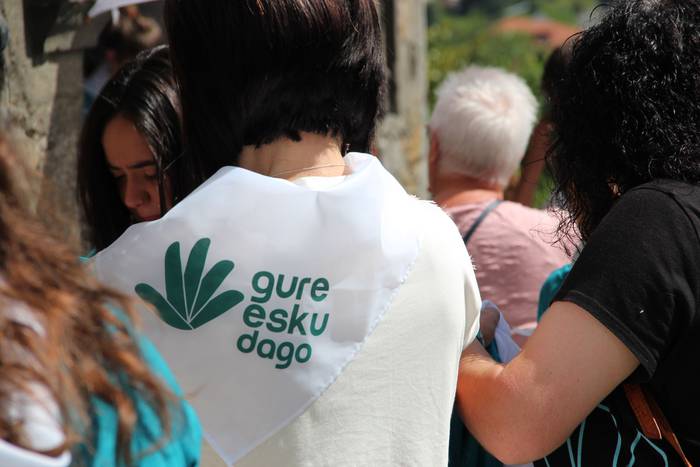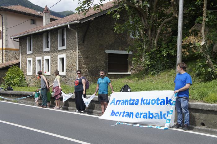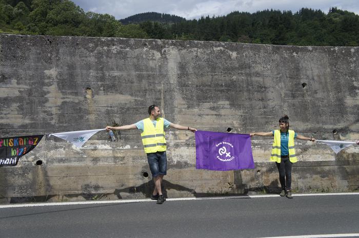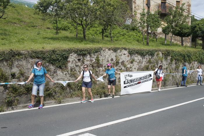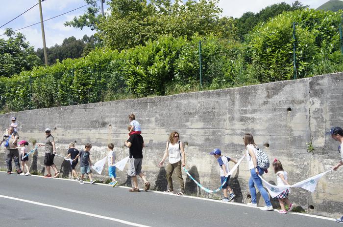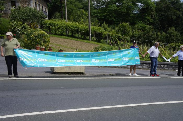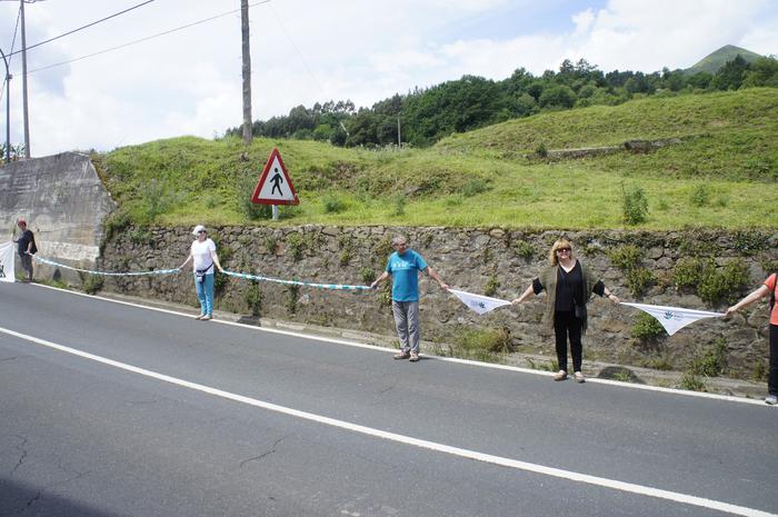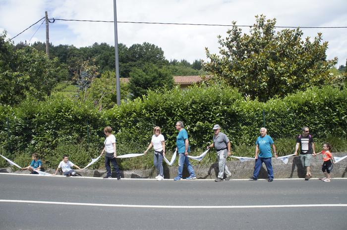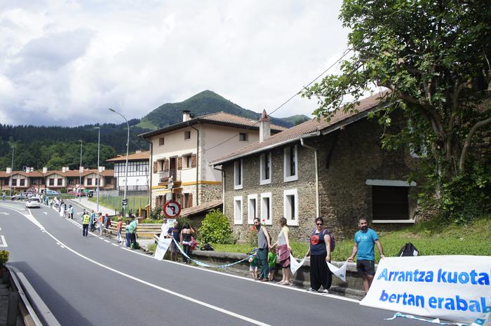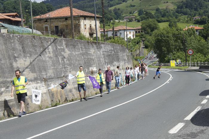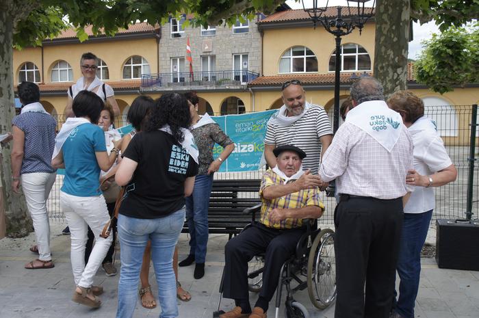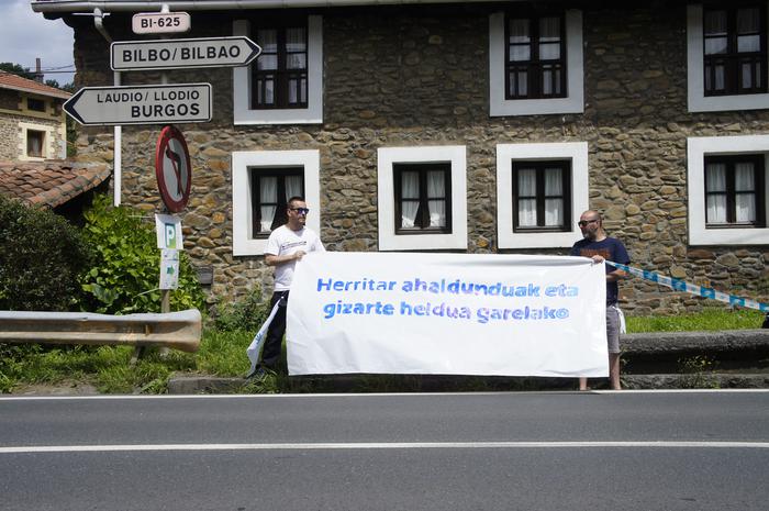 Arrankudiaga eta Zolloko herritarrek Galdameseko lagunekin bat egin dute herrigunean Gure Esku Dagoren giza katean.