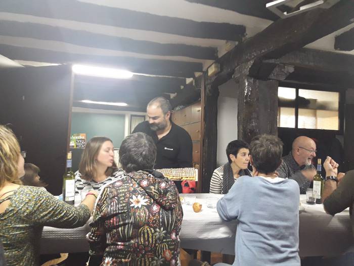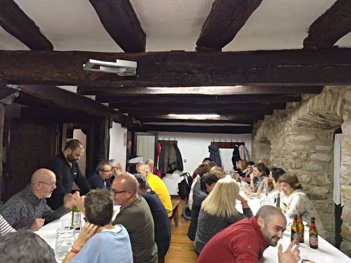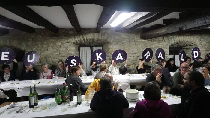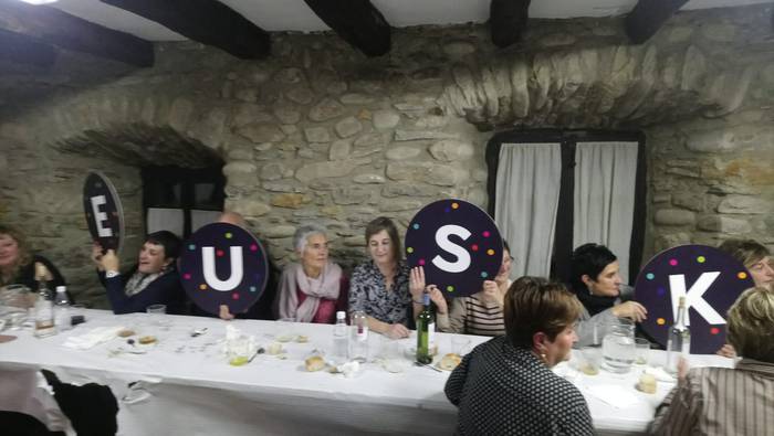 Atzo egin zuten Arrankudiagako Gizarte Etxeko laguntzaileentzako afaria. Herriko hainbat bizilagun bildu ziren mahaiaren bueltan. Afalostean Euskaraldiaren aldeko hainbat argazki egin zituzten.