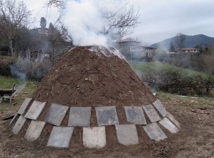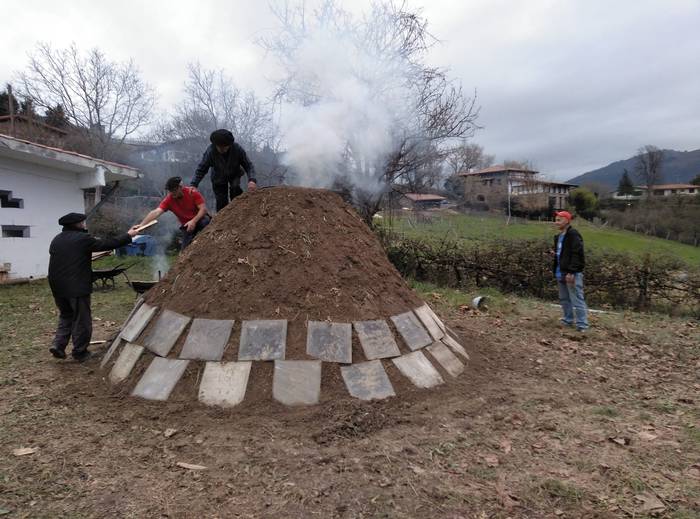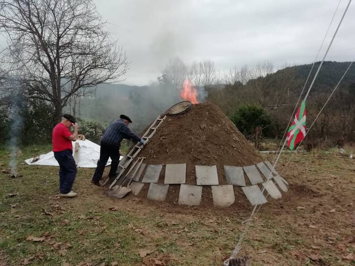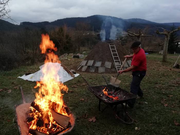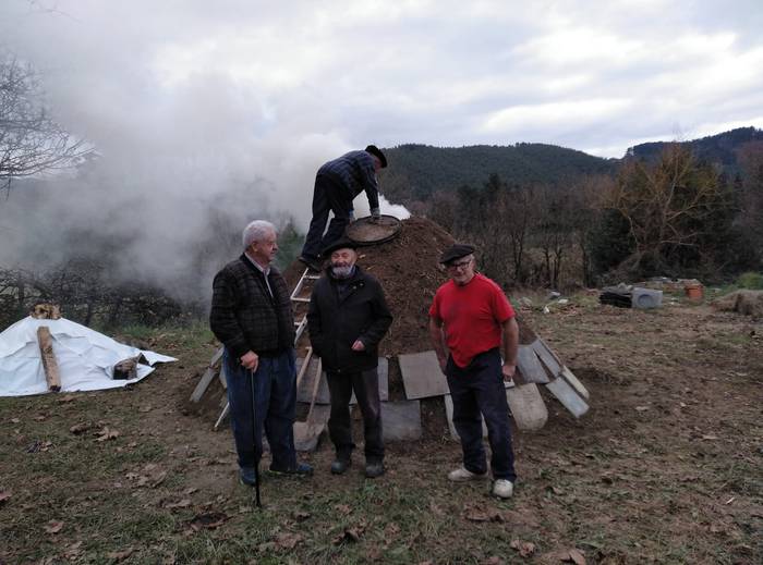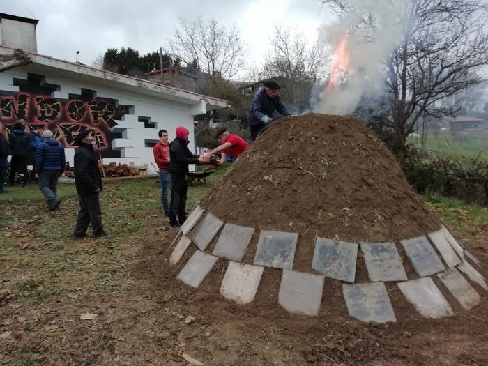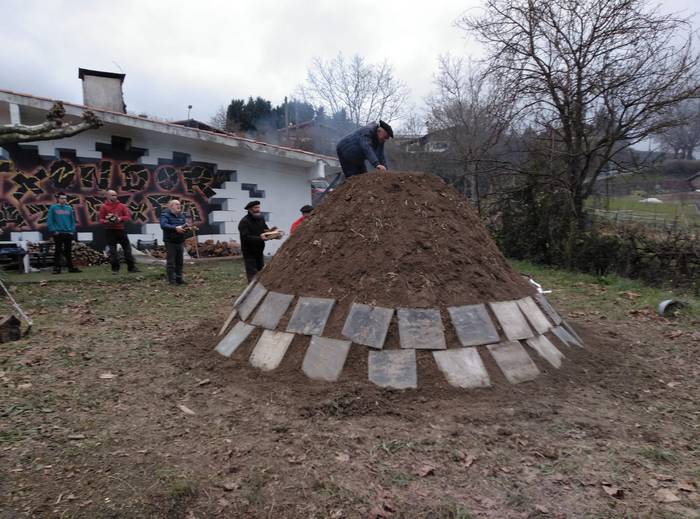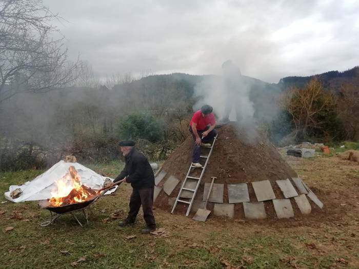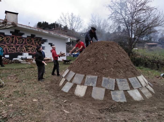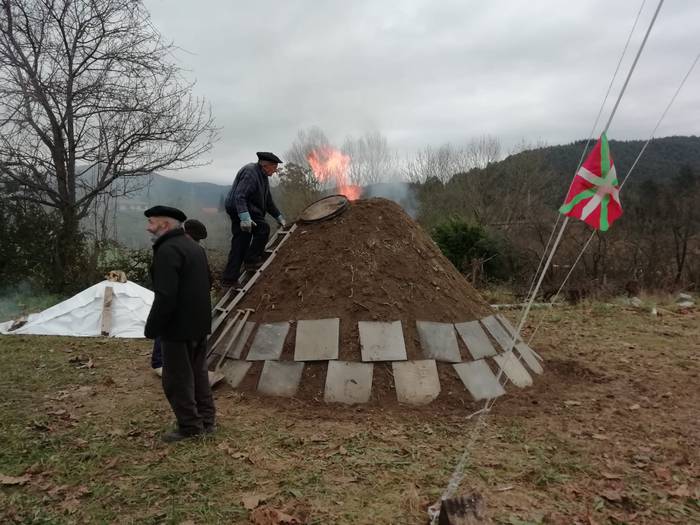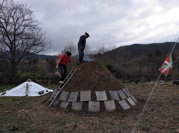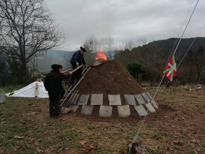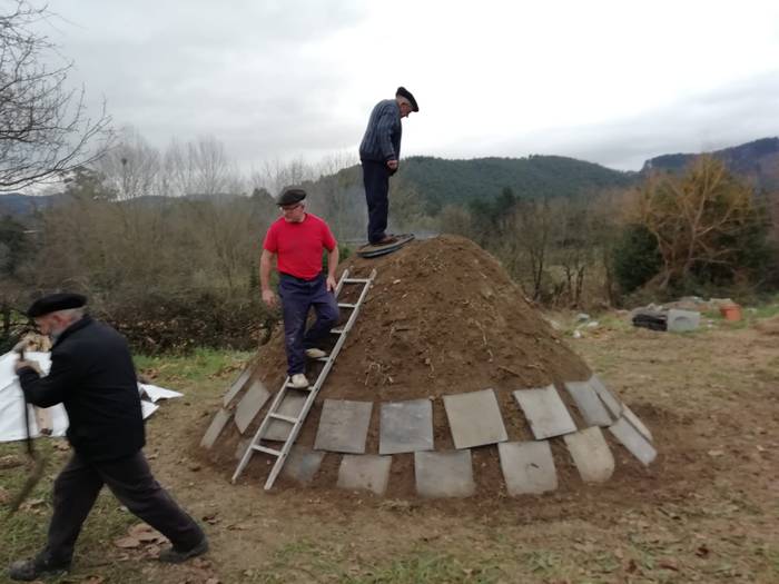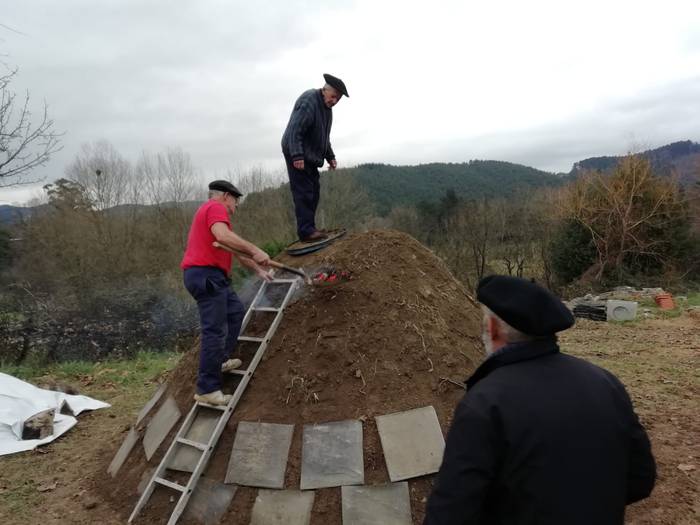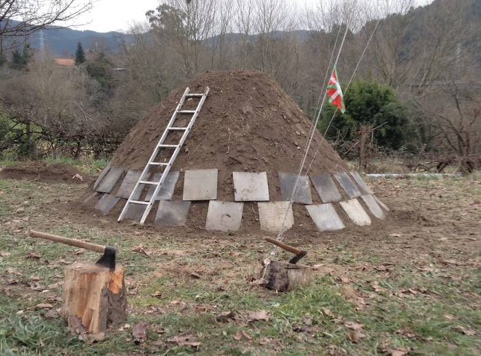 2019ko azken egunetan txondorra bera eraiki zuten eta ostiralean egurra sartu zuten, barruan deshidratatzeko eta ikatza lortzeko.