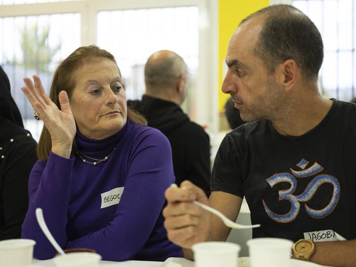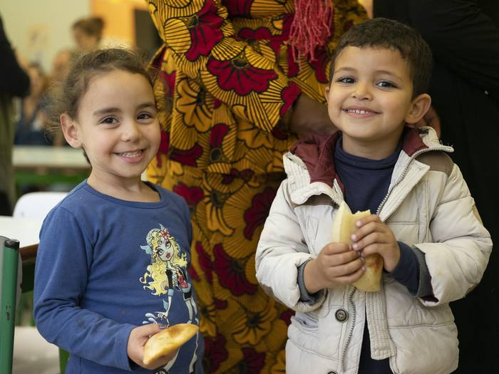 Familiek etxetik eraman zuten janaria eta norberak gogoko izan zuena dastatu zuen. Denetarik egon zen: pique macho, arepak, tahini, cous-cous, harira, patata tortillak, barazki kitxea...