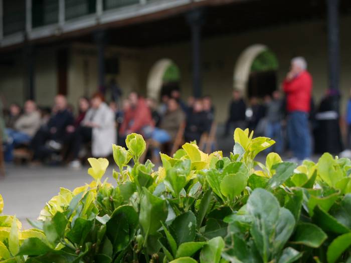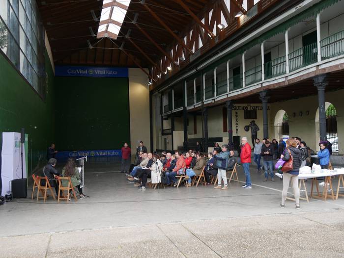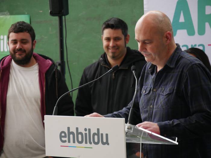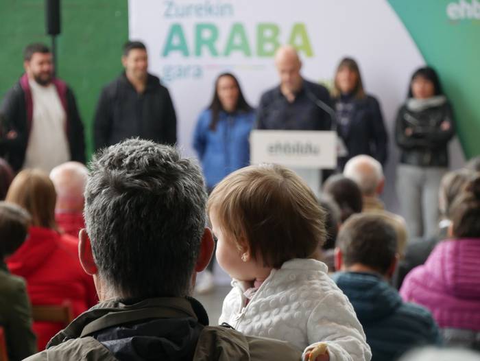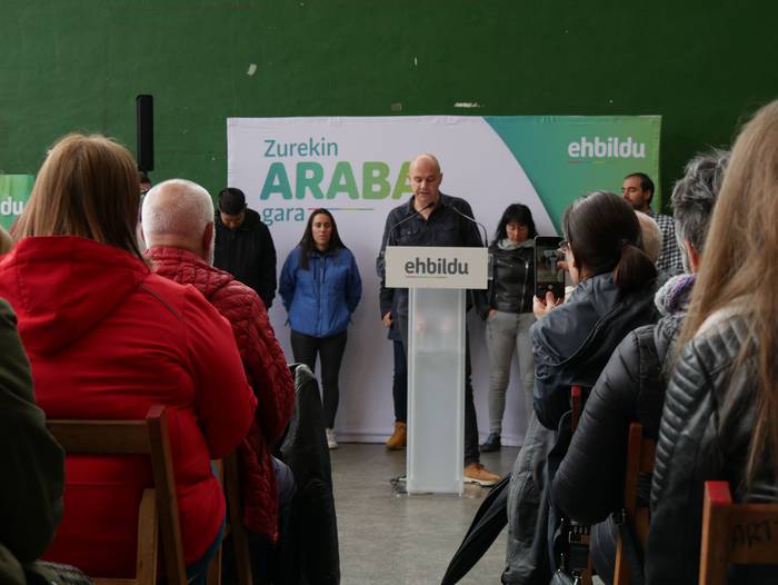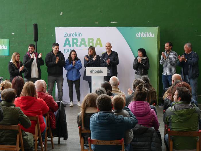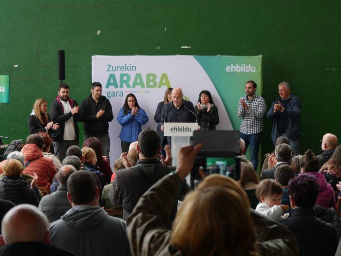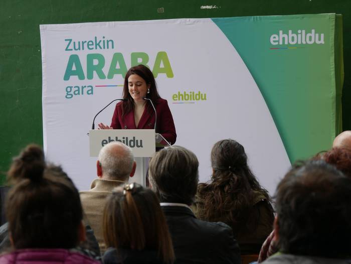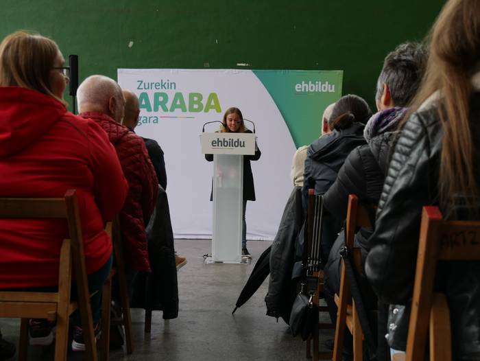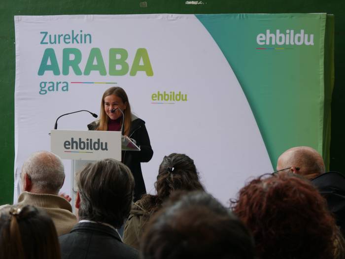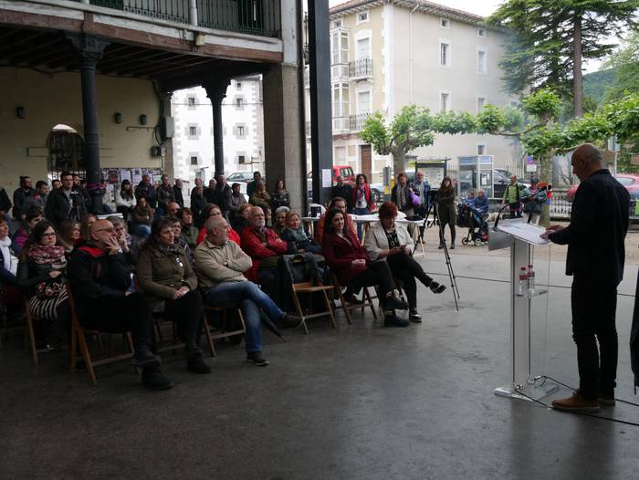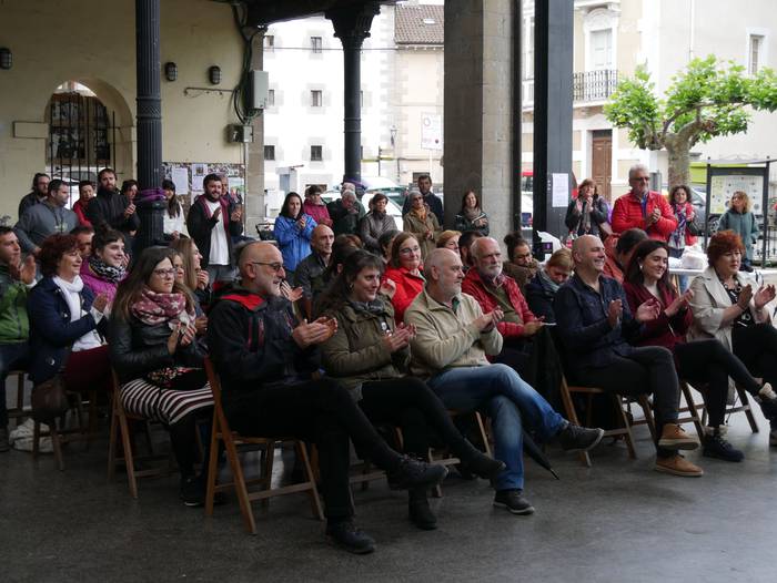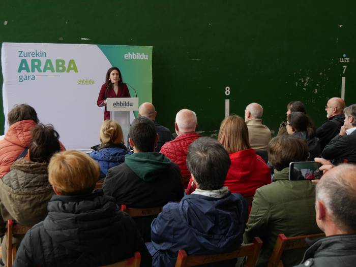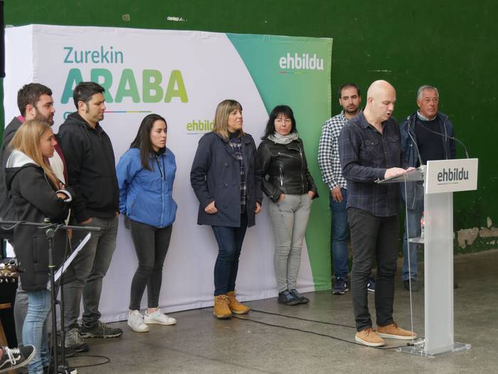 Frontoian burutu du ekitaldi politikoa Artziniegako EH Bilduk. Ainhize Solaun Mendiguren Batzar Nagusietarako Aiarako hautagaiak hartu du hitza lehenik. Apirilak 28ko emaitzak justizia poetikotzat jo ditu: "40 urteren ostean eskuinekoak kanporatu ditugu. Maitzaren 26an emaitzak hobetuko ditugu". Aiaraldeari dagokionez, 9 udalerritan gobernuan zein oposizioan EH Bilduk eginiko lana goraipatu du, "lorpen handiak izan ditugu, nahiz eta borrokak sufrimendu ugari ekarri". Aipamen berezia egin die Isidro Murga eta Galder Barbadori. Egoera politikoari erreferentzia eginez, ziklo berriaren beharra azpimarratu du: "Bestelako lehentasun eta gobernu ereduak behar ditugu, parte hartzean oinarritutakoak, herriek preferentzia izango dutenak". Euskal Herriko langabezia tasa altuenetakoa eskualdean dagoela nabarmendu du, tokiko komertzioek multinazionalen negozioei aurre egin behar dietela, "eta gazteek atzerria jo behar dutela ogia lortzeko". EH Bilduren aldeko boza eskatu du hautagaiak: "Talde lanak, ilusioak, gardentasunak eta zintzotasunak definitzen gaitu. Gu ez gara politikari profesionalak, militante politikoak gara; urteak daramatzagu herri eta nazio honen alde lanean, horregatik dakigu EH Bildu dela tresnarik eraginkorrena norabidea aldatzeko".