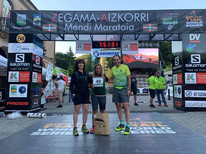 Jendetza batu zen Zegama-Aizkorri mendi maratoia ikusteko atzo Gipuzkoan. Eskualdetik ere lagun ugari hurbildu ziren kirolariak animatzera. Parte hartzera joan zenetako bat izan zen Zuriñe Frutos korrikalari artziniegarra.