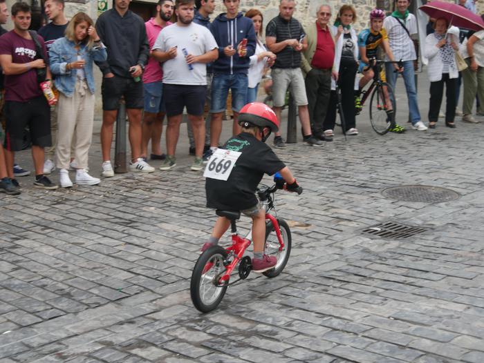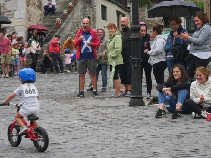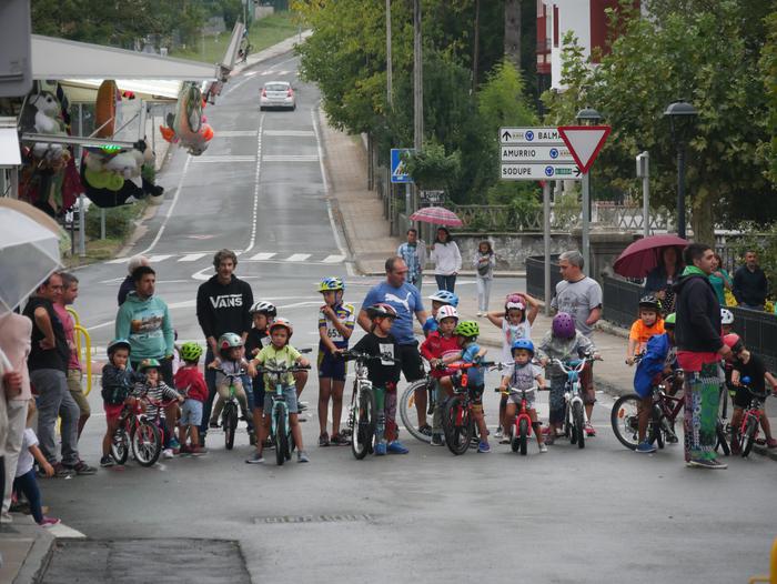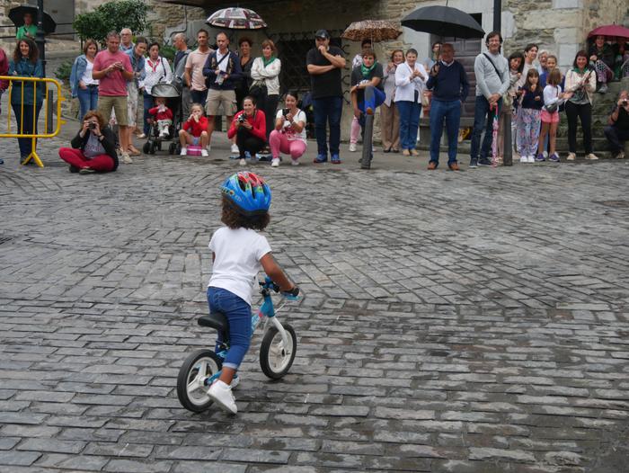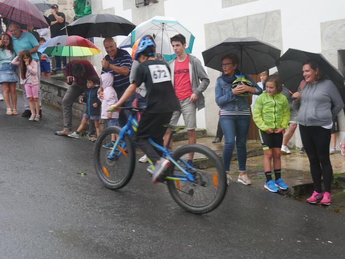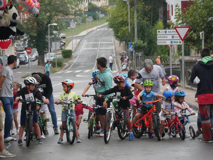 Kirolari txikienek ibilbide motza egin zuten eta kuadrillen arteko lehiaketan zein gazteenean aldapa handiagoa gainditu behar izan zuten.