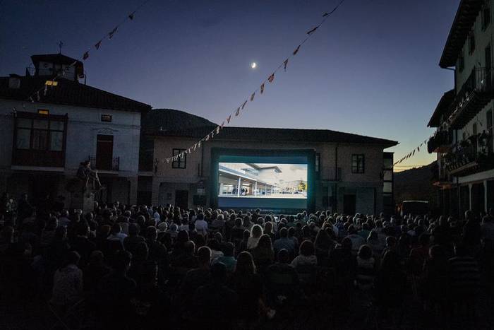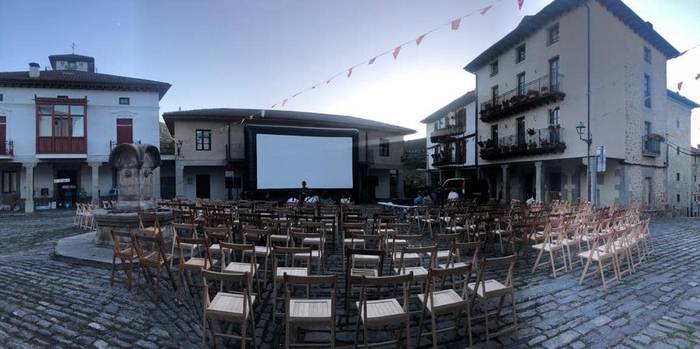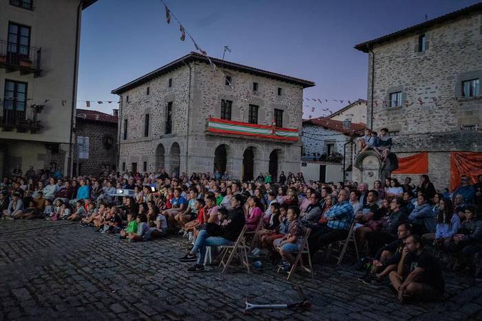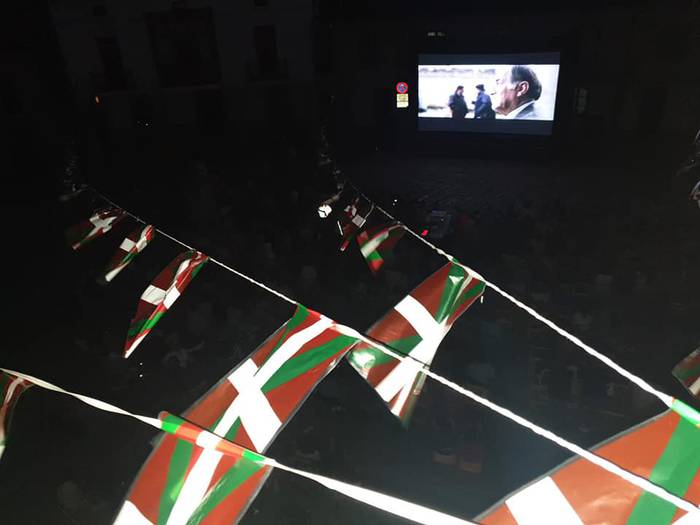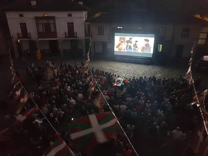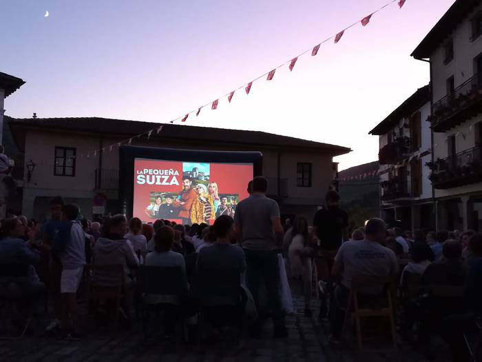 Zinema eskaini zuten atzo Goiko plazan, jaien barruan. Zehazki, Artziniegan grabatutako "La Pequeña Suiza" filma ikusteko aukera izan zuten herritarrek.
