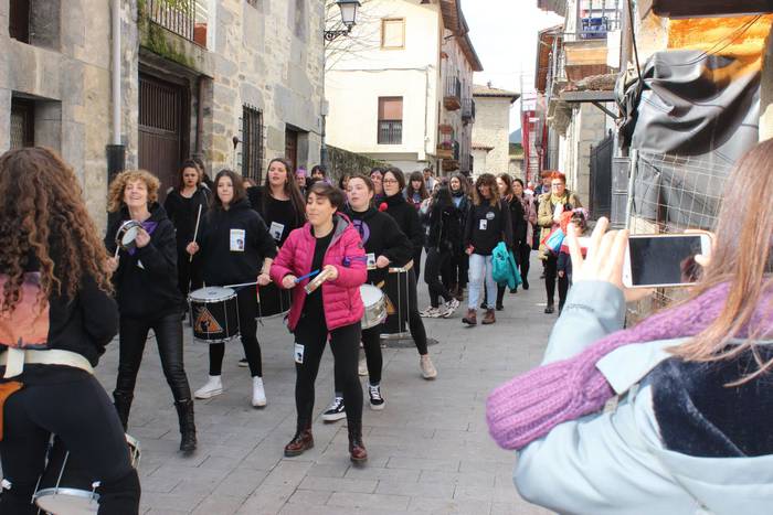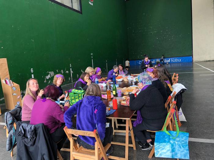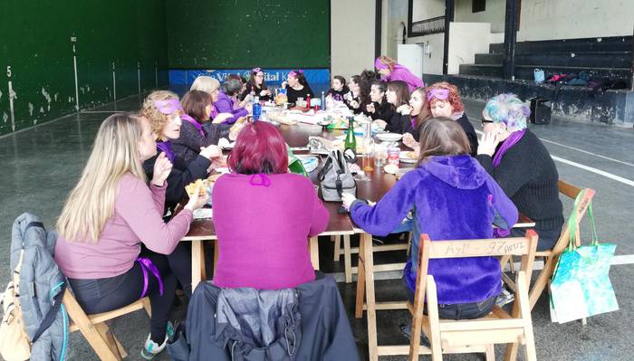 Egun osoko egitaraua prestatu dute Artziniegan Emakumeen Nazioarteko Eguna dela eta. Frontoian egin dira ekintza gehienak. Gosaria egin dute lehenbizi, eta kalejiran joan dira jarraian, Builaka batukadaren erritmopean.