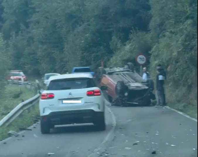 Dirudienez, autoa bidetik atera eta horren ondorioz autobusaren kontra jo du. Ibilgailua irauli da kolpea dela medio.