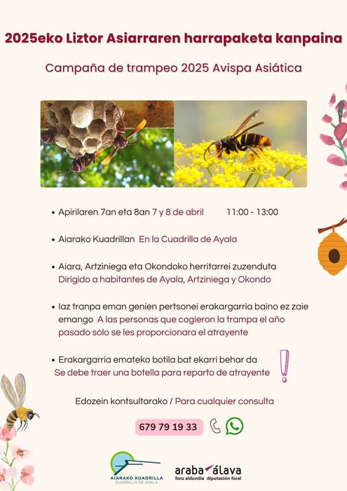 Tranpaketaren kanpainiaren hasiera apirilaren lehenengo egunetan emango da maiatzaren 15ean amaituko delarik. Horregatik, Aiarako Kuadrillak aldez aurretik tranpa eta erakargarri homologatuak banatuko ditu interesdunen artean. Aurreko kanpainetako tranpak (poteak) dituztenei aurrikusitako harrapaketa egunetarako beharrezkoa den erakargarria baino ez zaie emango.