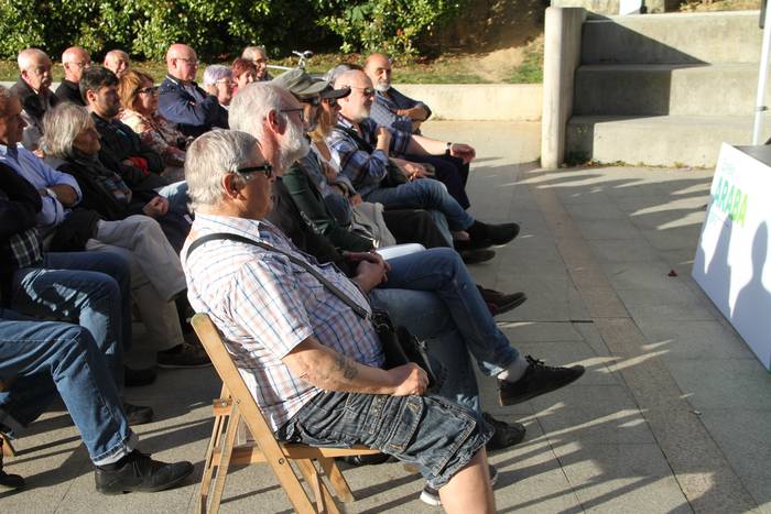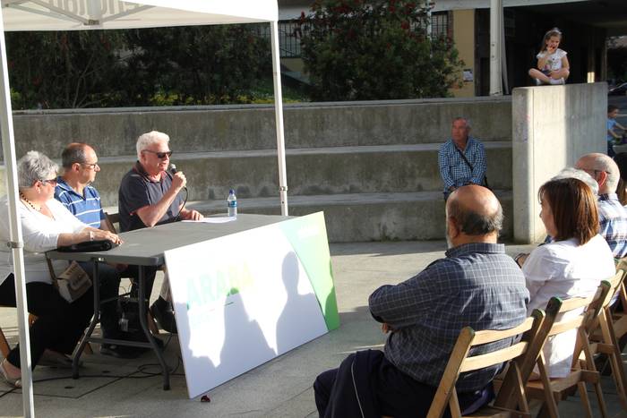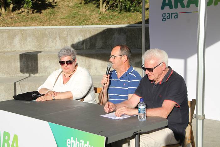 Iñaki Martín, Maite Bilbao eta Iñaki Barandiarán Latiorron pentsioei eta alargunen mugimenduari buruz mintzatu ziren asteazkenean EH Bilduk antolatutako ekitaldian.